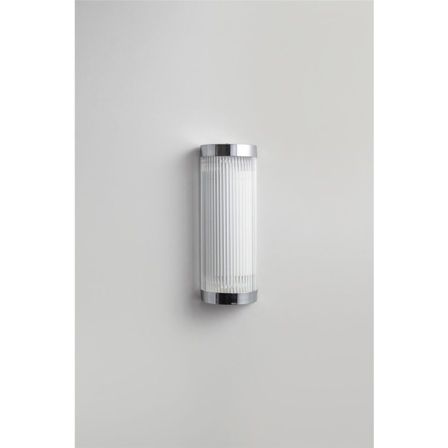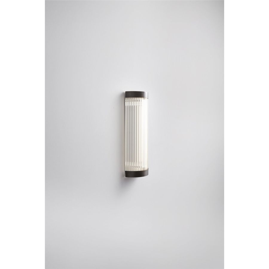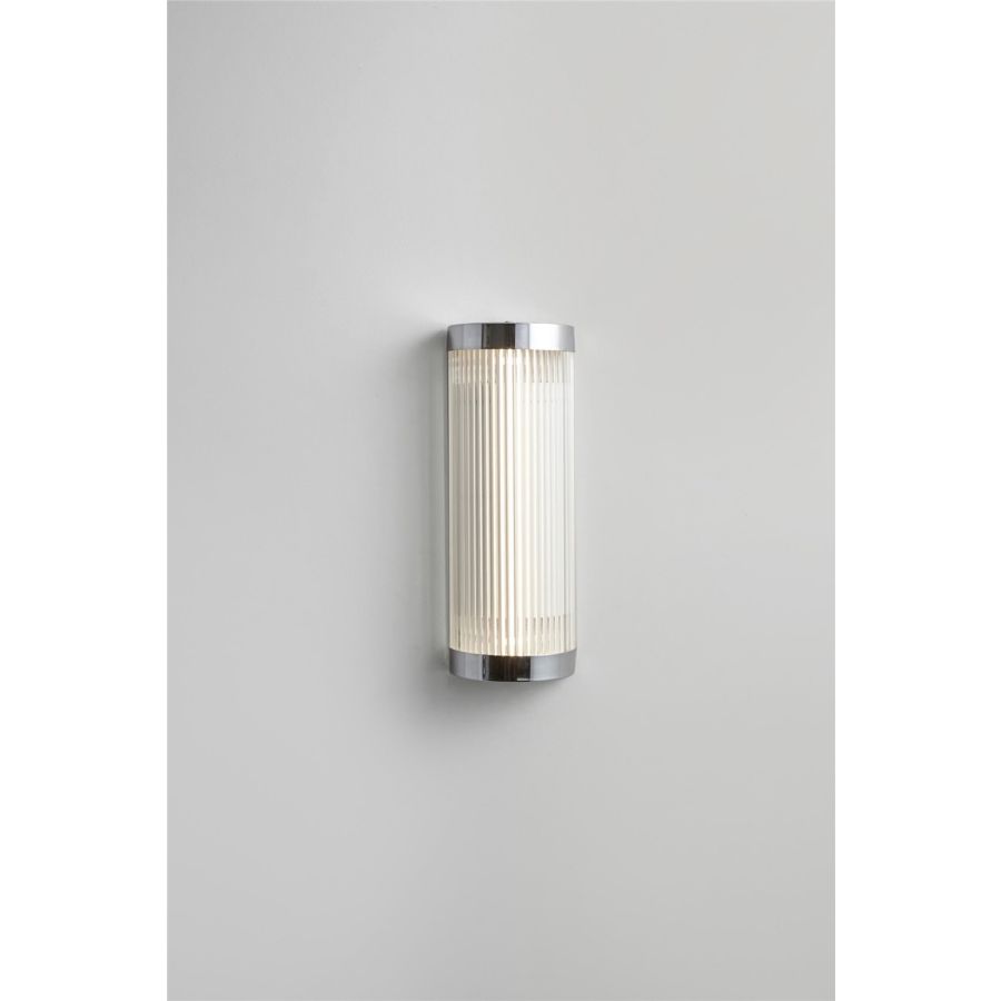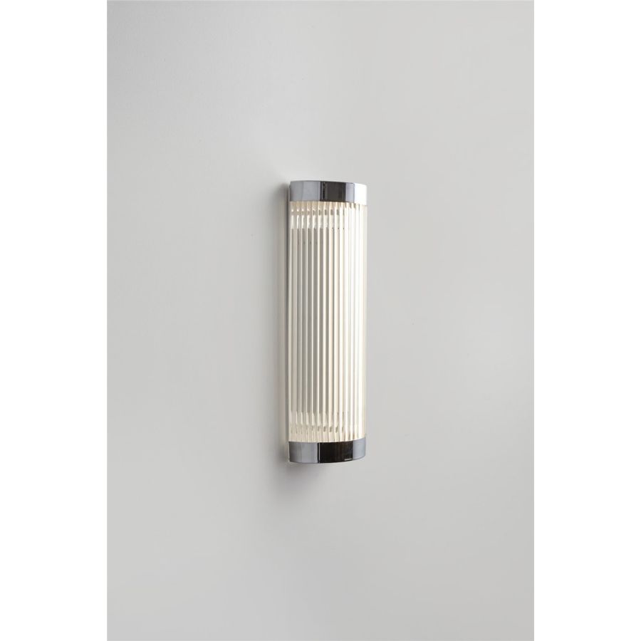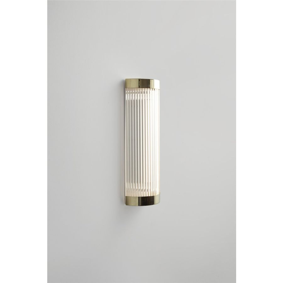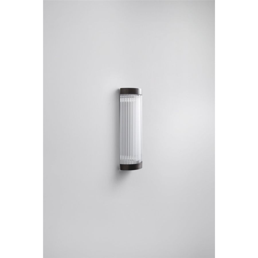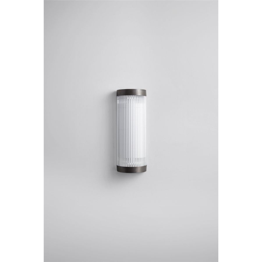 Our LED Pillar Wall Light is an elegant Art Deco inspired fixture. Perfect for illuminating bathrooms, its curved profile is made of 8mm diameter solid glass rods. Available in weathered brass, polished brass or chrome plated finishes, and two different sizes (H:40cm x W:15cm or H:60cm x W:15cm).
