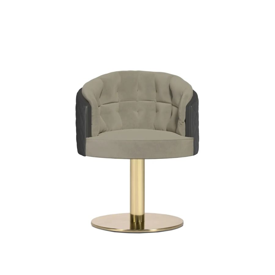 The Otto Swivel Dining Chair displays a distinctive round shape, combining exceptional comfort with timeless style. As a proud addition to the Otto upholstery collection, this dining chair enhances any grand setting with a swivel feature, making a bold statement.