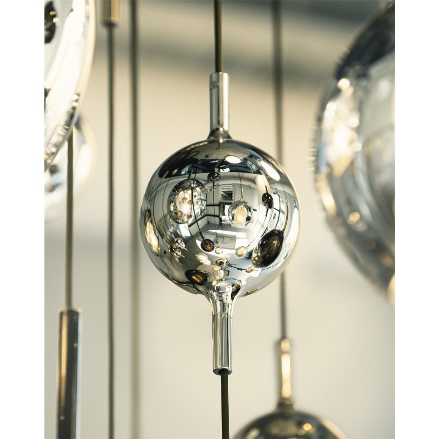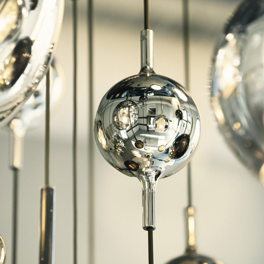 Charm is the accessory that enhances the beauty and elegance of the Glo collection. Available in mini and micro versions, positioned along the cable to enrich it, its spherical shape amplifies the effect of light, creating plays of reflection that transform the ambience. Made of borosilicate glass, Charm reflects and diffuses light in an extraordinary way, intensifying its intensity and infusing the room with a warm, sophisticated luminosity.