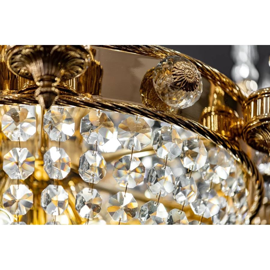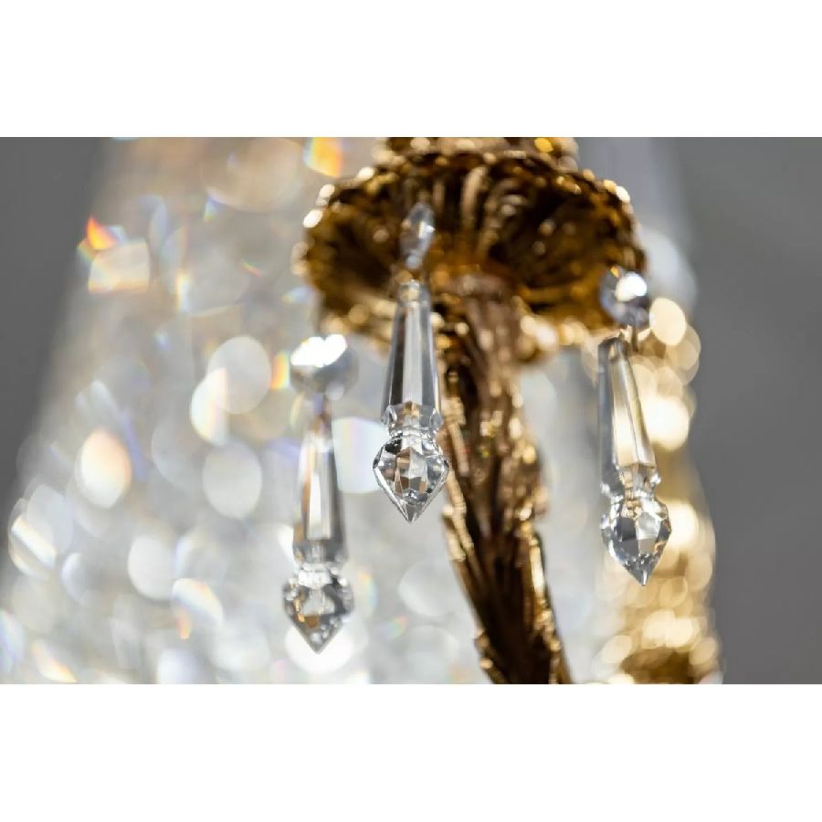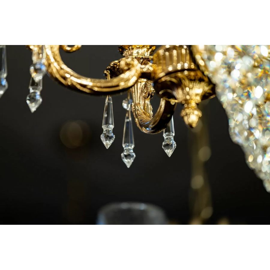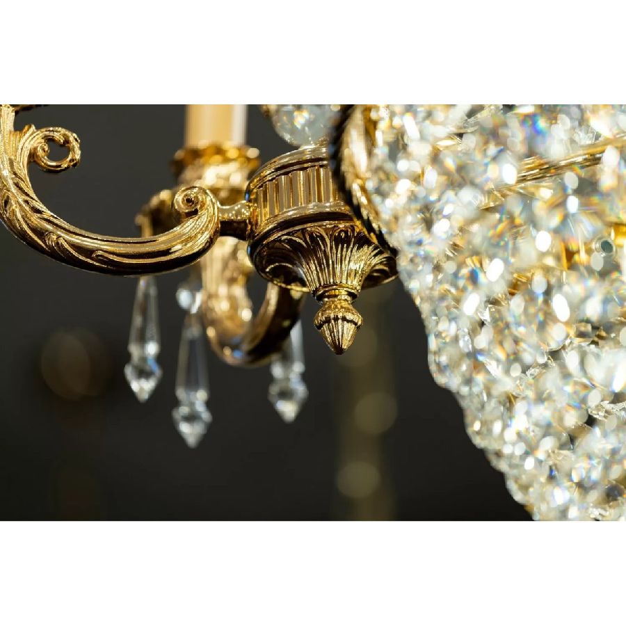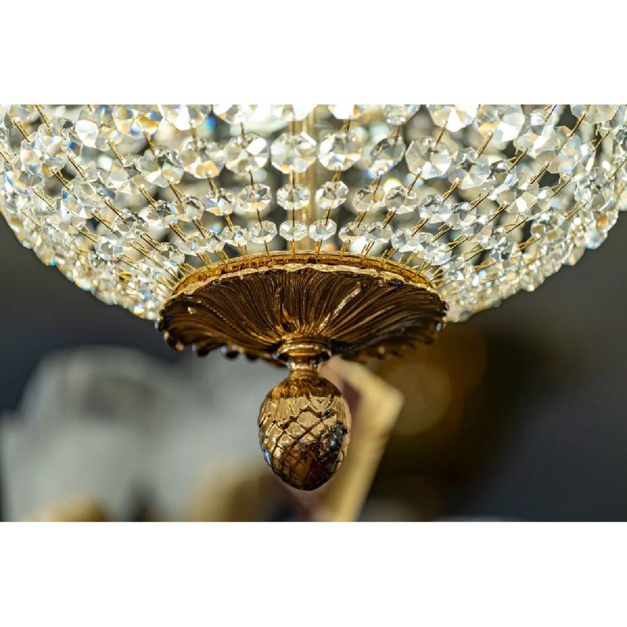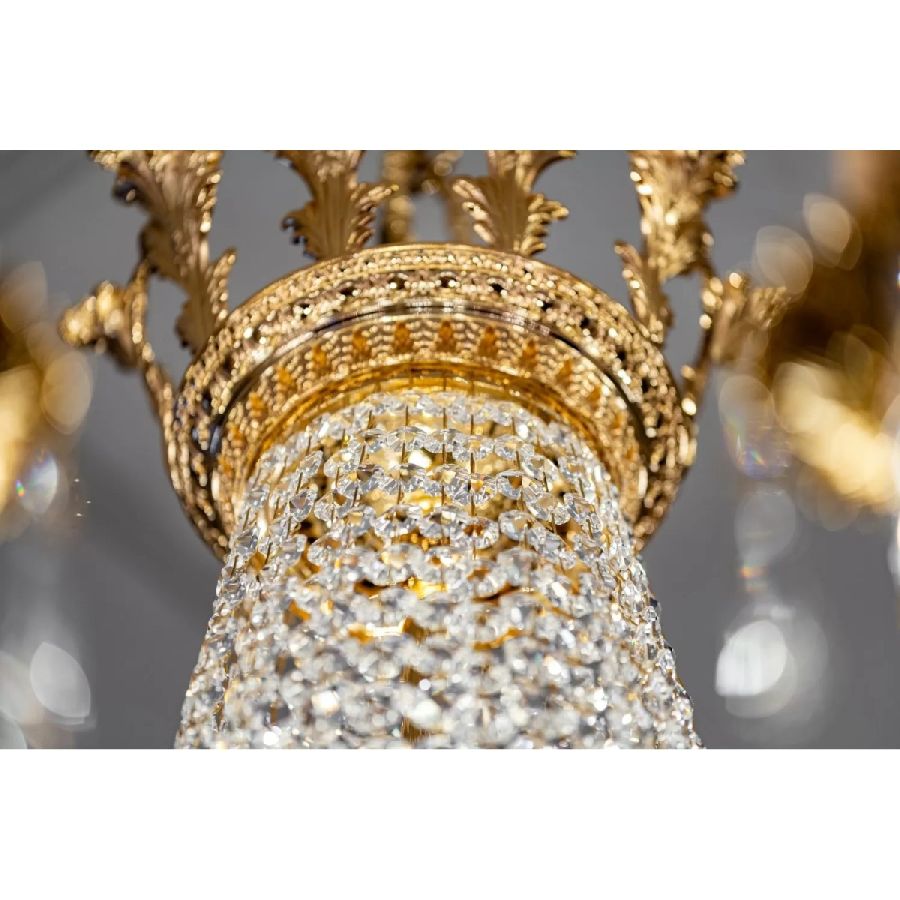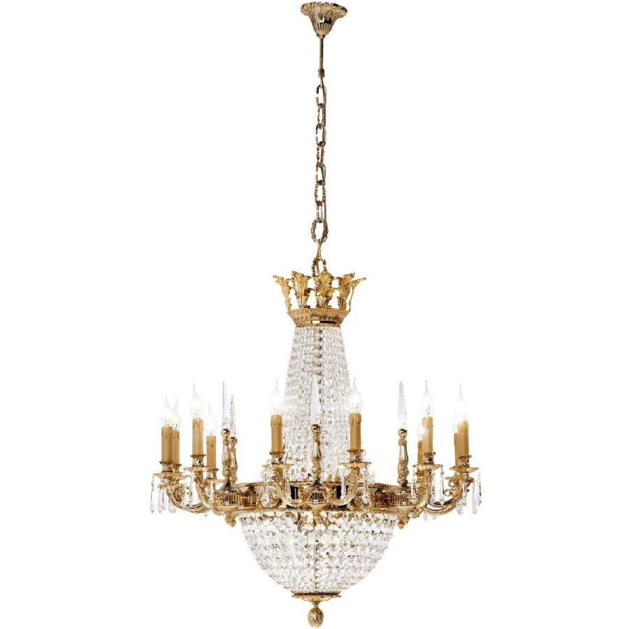 A great classic of the Empire style made of brass with a pure gold finish, with Schoeler crystals and crystal details in the metal band, this chandelier can also be made in large sizes.