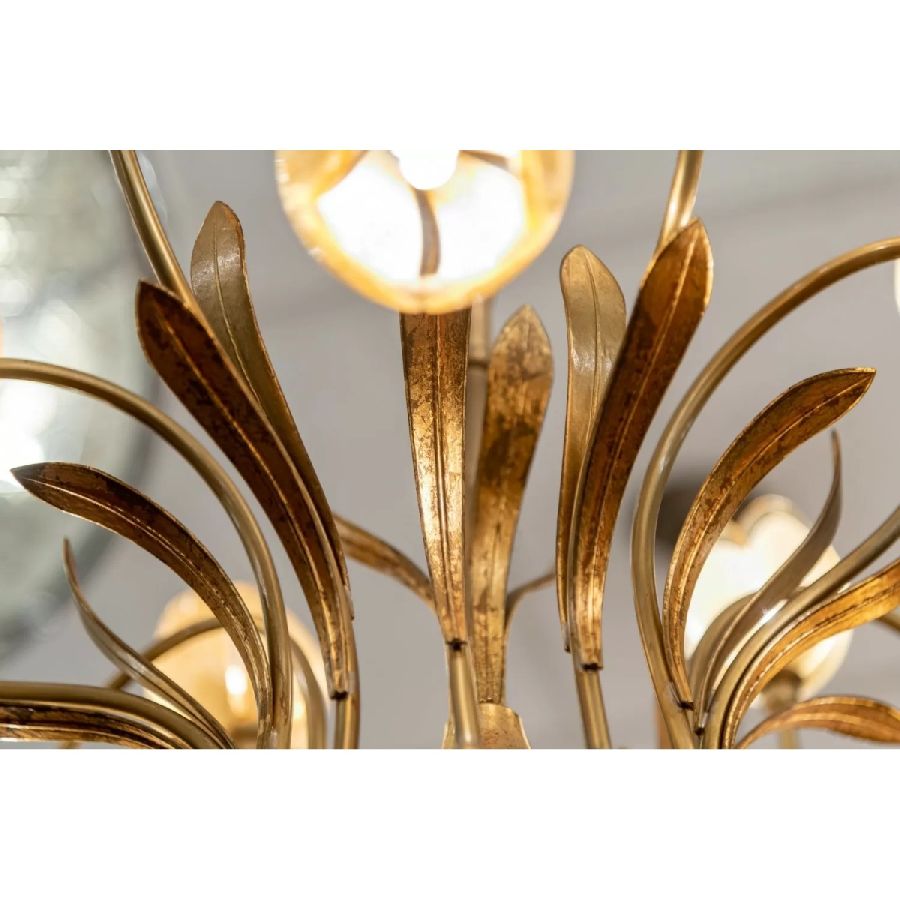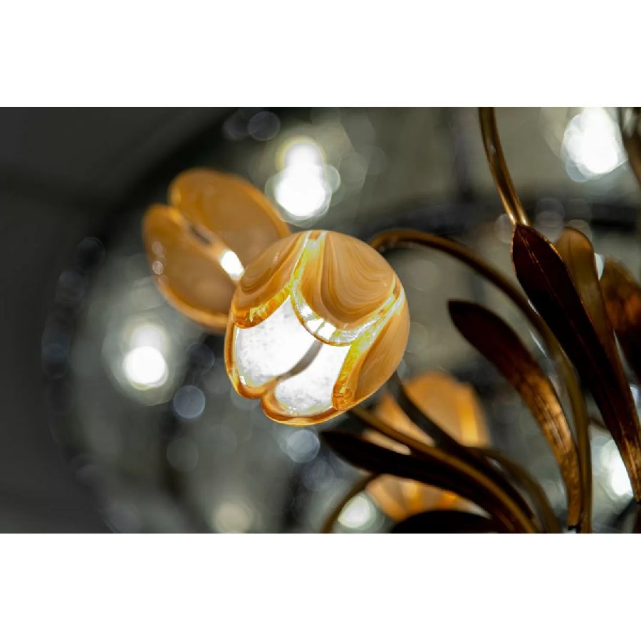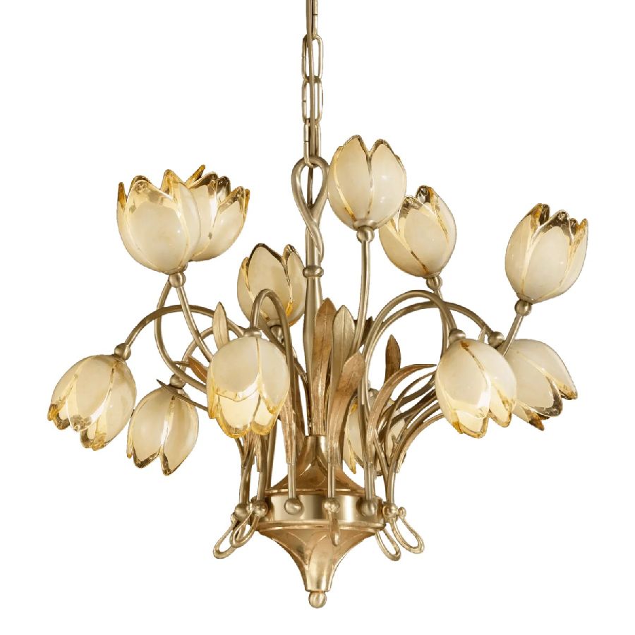 This large collection of chandeliers, wall lamps, table and floor lamps, recalls the shape of the tulip in the handcrafted glass, and it's in brass with a French Satin Gold / Gold Leaf finish or in Glossy Satin. Customizable in finishes and sizes