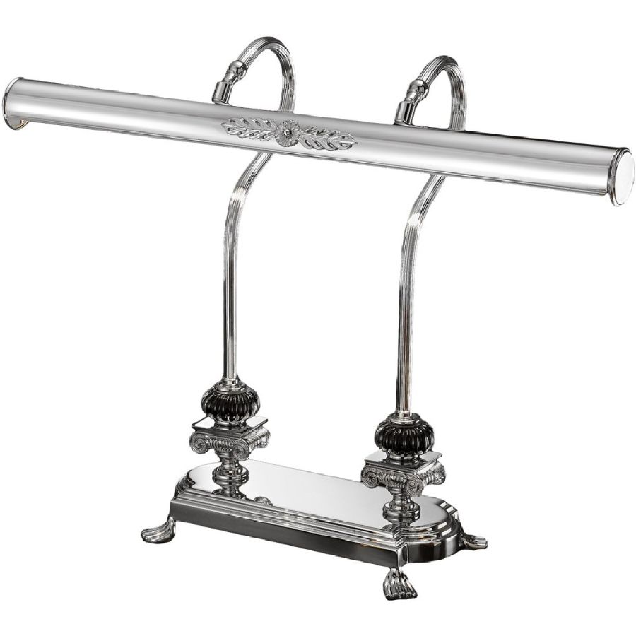 Elegant desk lamp with important dimensions, in brass in chrome finish with precious black crystal details, for a refined and contemporary environment