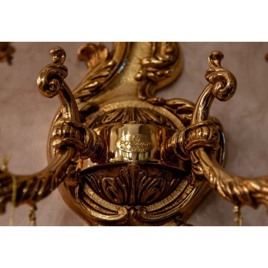 The Lara collection consists of luxurious and important chandeliers in shaded pure gold finish, with crystal cup available in amber and red colors, enriched with pleated organza lampshades and precious Schoeler crystals. Available in two different sizes. Applique in worked brass with lampshades and Schoeler crystals in combination.