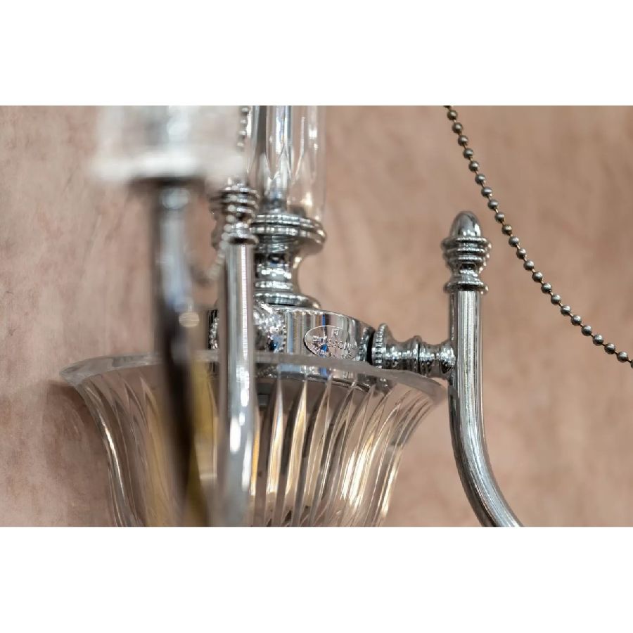This refined and elegant collection of chandeliers, applique table and floor lamps is the perfect combination of subtle and elegant brass and crystal with slender shapes. The lampshades that complete it can be in cream organza or in shantung. Customizable in finishes and sizes.