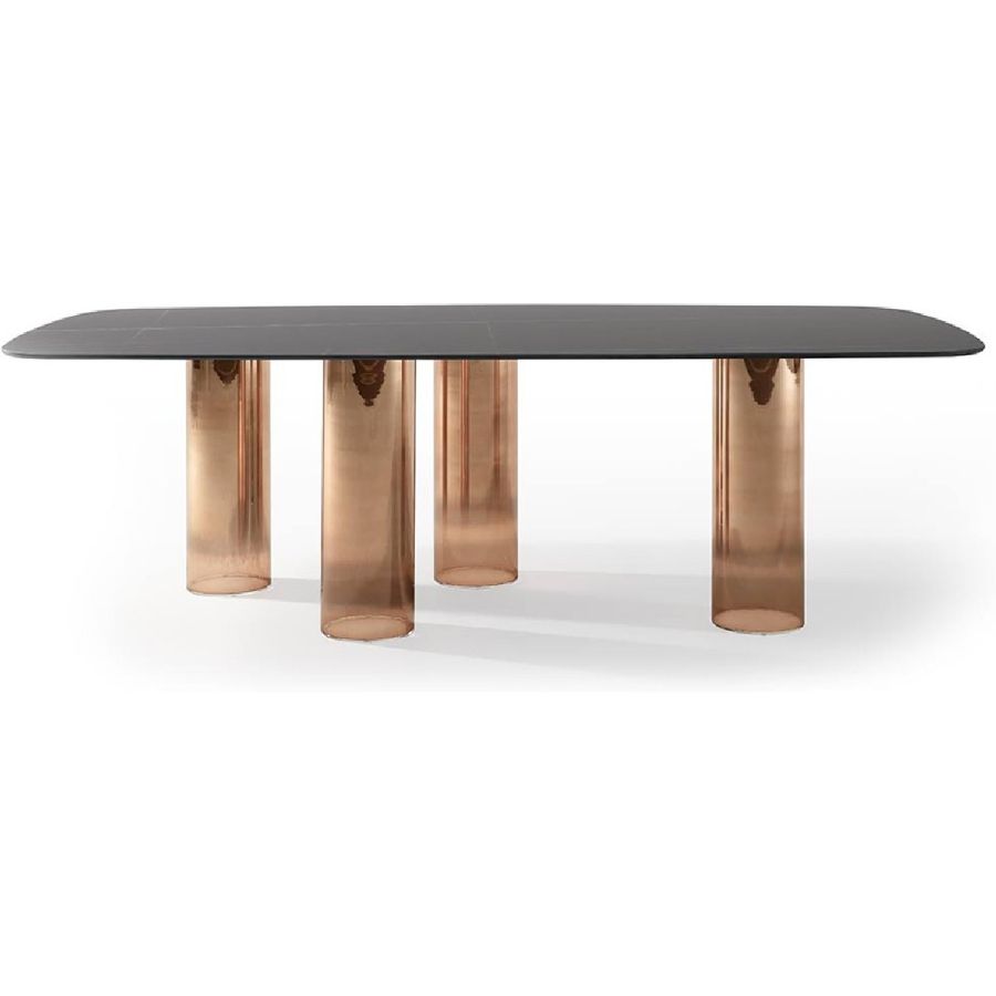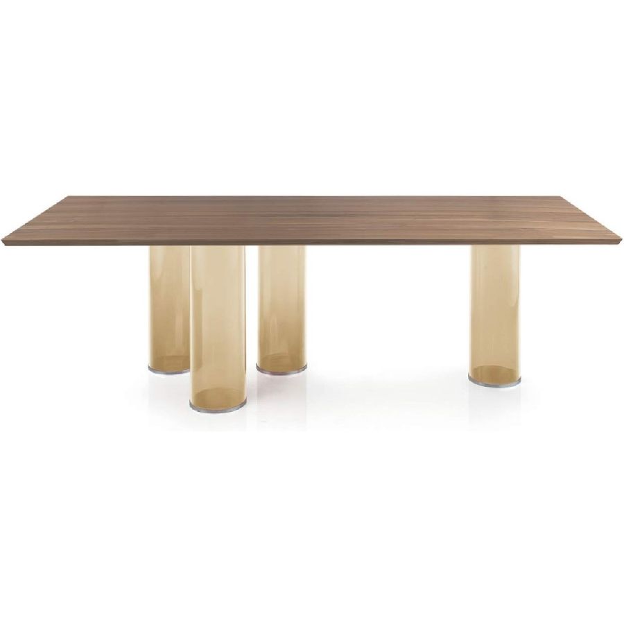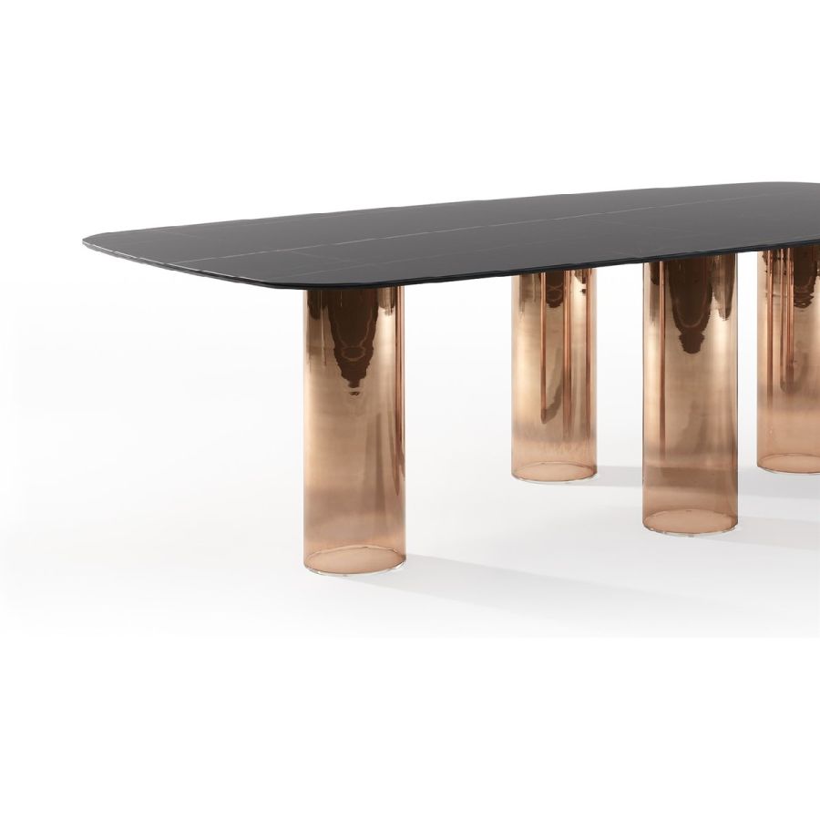 Dining table with base composed by Murano glass cylinders in the colours transparent, red, blue, aquamarine, amber, tobacco, amethyst or in shaded sputtering finish bronze, silver or copper.