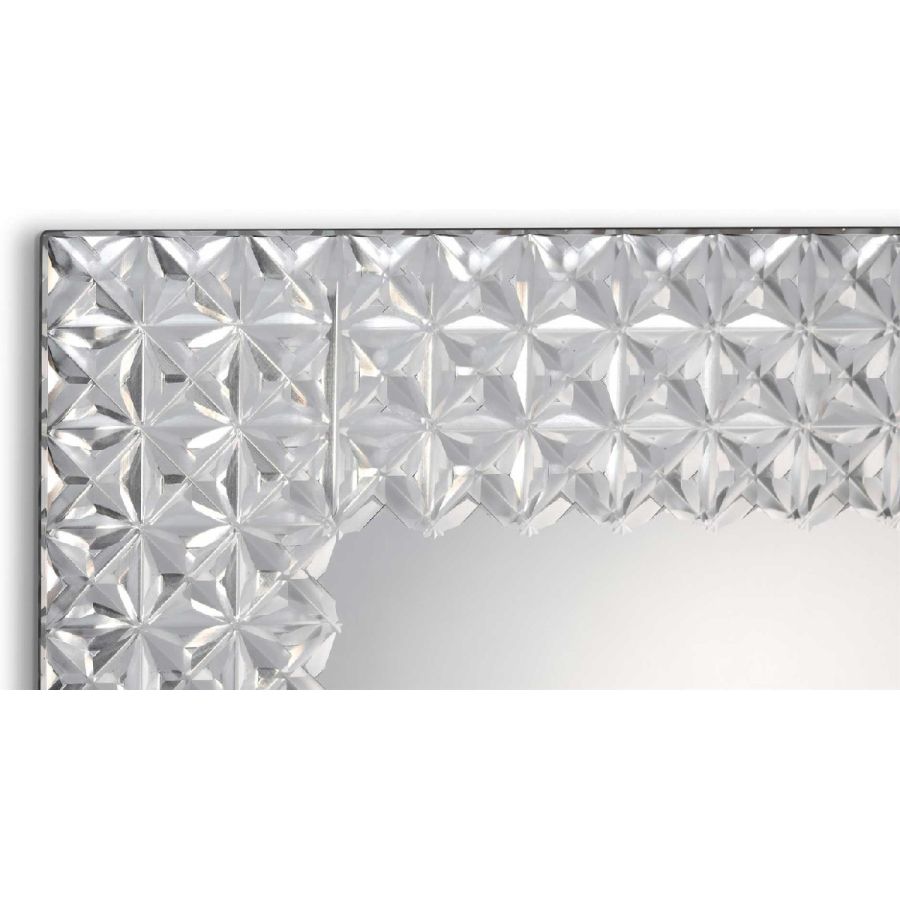 Mirror in extraclear 6mm thick glass with polished edges and frame with perimetrical band 7,5cm wide with Bohème engravings.