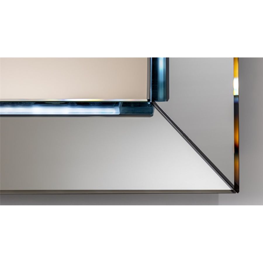 Collection of mirrors with a glass frame available in: mirror, smoked-mirror, lacquered or etched lacquered finish or in satin brass finish. optional Led lighting between mirror and frame