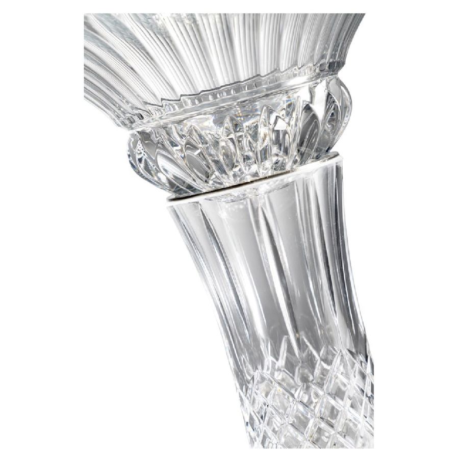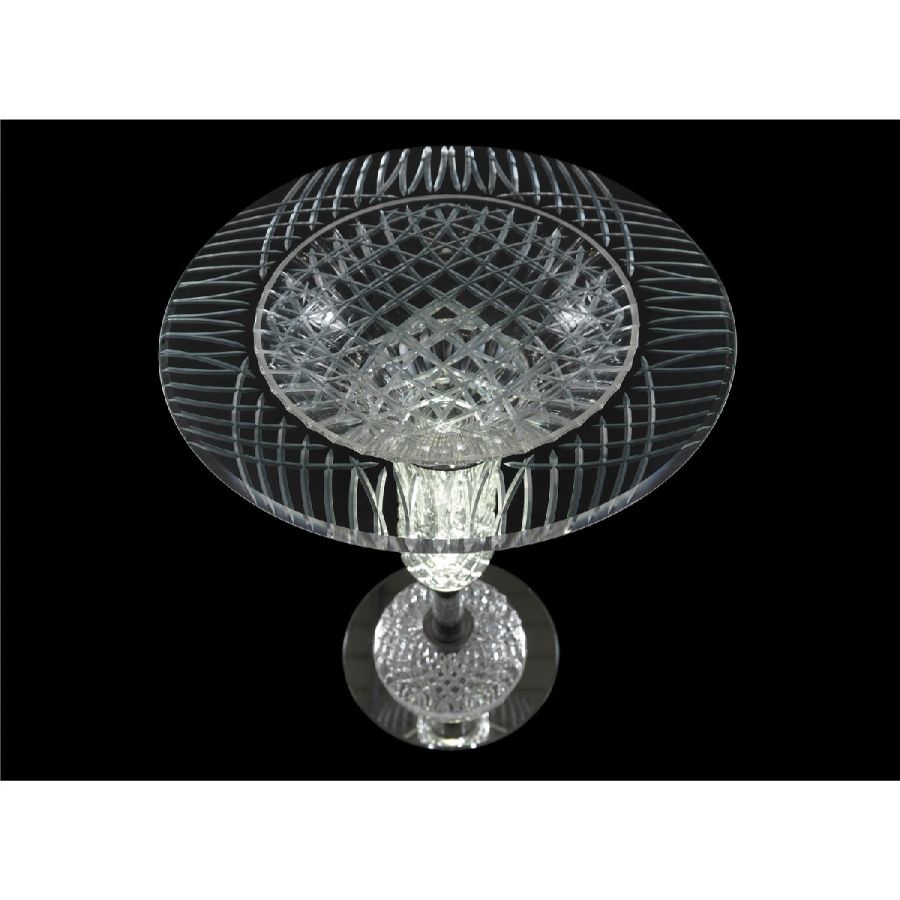 Side table composed of elements in engraved glass and base in extra-clear mirror glass. Extra-clear glass top with 45 ° bevel and engravings and LED lighting.