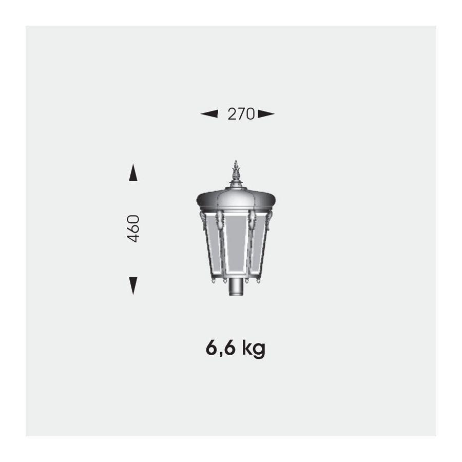 Ta lampa na postumencie firmy Robers (Niemcy) należy do linii zaprojektowanej w stylu wiktoriańskim ze wszystkimi tradycyjnymi atrybutami, które dodają oprawie królewskiego charakteru. Taka elegancka lampa stanie się wspaniałą dekoracją Twojego ogrodu lub ganku. Klosz w kształcie latarni wykonany jest ze szkła dmuchanego, wyposażony w dolne mocowanie na żarówkę. Jej matowe panele z fasetami są formowane i delikatnie zdobione motywami płatków kwiatów. Daszek o tym samym sześciokątnym kształcie wieńczy ozdobne, wielopoziomowe zwieńczenie. Cała oprawa jest wykonana ręcznie z kutego żelaza, odporna na działanie wody i trwała, gotowa do pracy w każdym klimacie i warunkach pogodowych. Ta ekskluzywna lampa dostępna jest w 10 opcjach wykończenia, aby jak najlepiej dopasować ją do twojego krajobrazu.