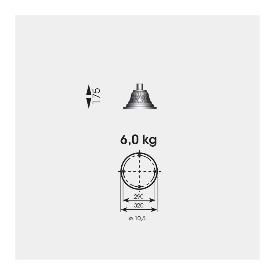 Ta lampa na postumencie w wyjątkowym wzornictwie należy do kolekcji zewnętrznej firmy Robers (Niemcy). Jej krótka kolumna w kształcie stożka jest bogato zdobiona w kształcie falistym. Uchwyt powtarza ten sam motyw kwiatowy. Razem tworzą harmonijne zestawienie w klasycznym stylu. Lampa nie zawiera ramy, w której klosz w kształcie kuli o wykończeniu opalowym jest odsłonięty, lecz zwieńczony tradycyjnym wielostopniowym zakończeniem. Lampa jest trwała i odporna na wodę. Dostępna w 10 wykończeniach. Każdy detal jest ręcznie wykonany i montowany.