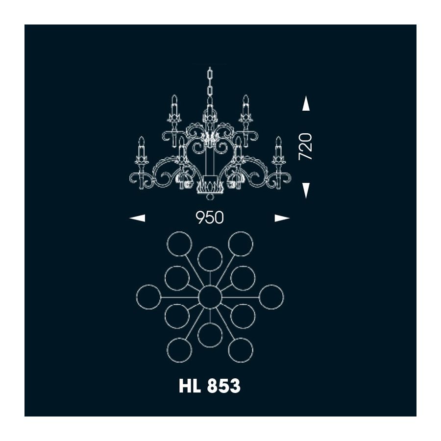 Ta ekskluzywna lampa wisząca niemieckiej marki Robers znajduje się w ich kolekcji “Indoor 11”. Projektanci złamali swoje zasady i stworzyli lampę w stylu bardziej klasycznym niż industrialnym. Jest wykonana w całości z kutego żelaza: podstawa, tuby świecznikowe, kielichy świec, podsufitka, hak, słup i ramiona. Kowale ręcznie wykonują każdy szczegół, a następnie montują produkt końcowy. Pokazują, jak ogromny żyrandol z żelaza może wyglądać elegancko i luksusowo: jego ramiona są zgięte w wdzięczny sposób i ozdobione licznymi elementami również wytwarzanymi ręcznie. Lampa wisząca jest wyposażona w 12 świec ze szkła o matowym wykończeniu.