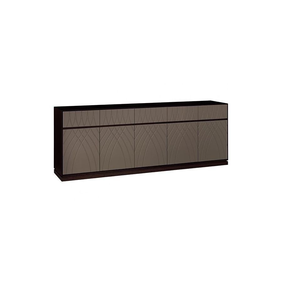 Jersey 250 represents gutsy, soft and exclusive luxury. It is the result of the fusion of refined materials such wood and leather and presents a Jersey pattern. It displays the creative energy of Smania that gives the piece a bright elegance. Decoration and functionality blend together: 5 doors and drawers create the space needed in halls and living rooms. The special beauty of the wood and the decorative refinement of the leather create an intense aesthetics, perfect for classic and modern living rooms. In fact, Jersey is characterized by an aesthetic balance expressed through the shiny lacquering finishing and suffused light of the leather.