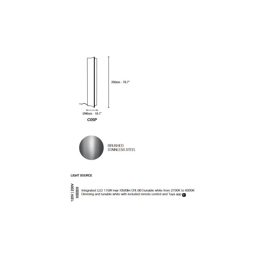 Body size: cm: Ø 46 x H 200/ inch.: Ø 18.1" x 78.7"