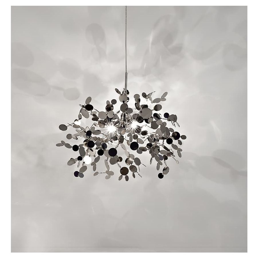 Lampa wisząca Argent N90S firmy Terzani została zaprojektowana przez projektanta Dodo Arslan. Argent składa się z chromowanych metalowych dysków, które zostały misternie ukształtowane ręcznie przez rzemieślników Terzani w skupiska. Warianty kolorystyczne: stal nierdzewna (nikiel), złoto. Niezwykle interesująca lampa z kolekcji Argent, która przyciąga uwagę, będzie doskonałym dodatkiem nad stół jadalny, lub stanie się pięknym elementem designerskim salonu, jak również ozdobi wnętrze obiektów publicznych, handlowych i komercyjnych.