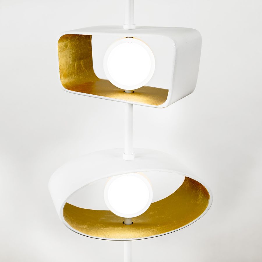 Using rich metal and improvements in lighting technology, Totem re-imagines designs from the 1950s and hearkens back to early American modernism. Featuring stacked and adjustable oval and trapezoid shapes, Totem comes in a variety of finish combinations and cast form compositions (all ovals, all trapezoids, or a mix of both). Customize the direction of the light by swiveling the cast forms left and right. In the center of each cast form is a round acrylic orb that conceals an LED lamp.