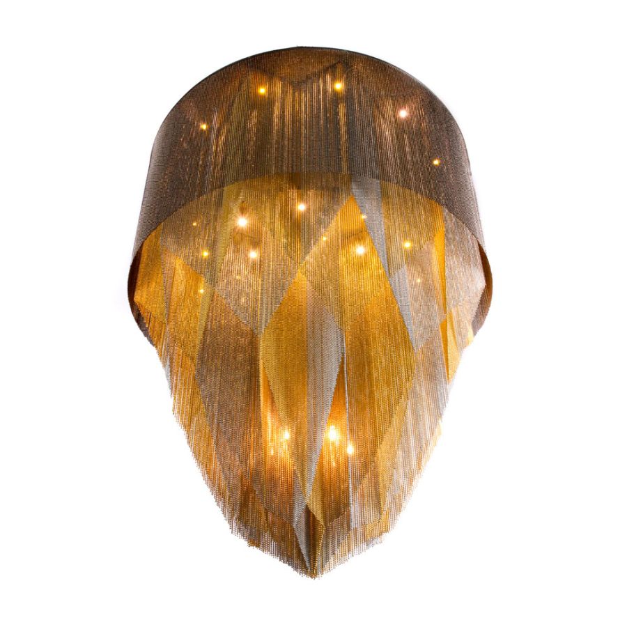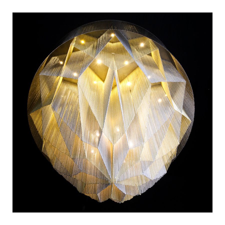 The ceiling mounted version of a sleeker simplified Crystalline version of the mandala No.1. Illuminated by 42 surface mounted and suspended G4 LED Lamps.
