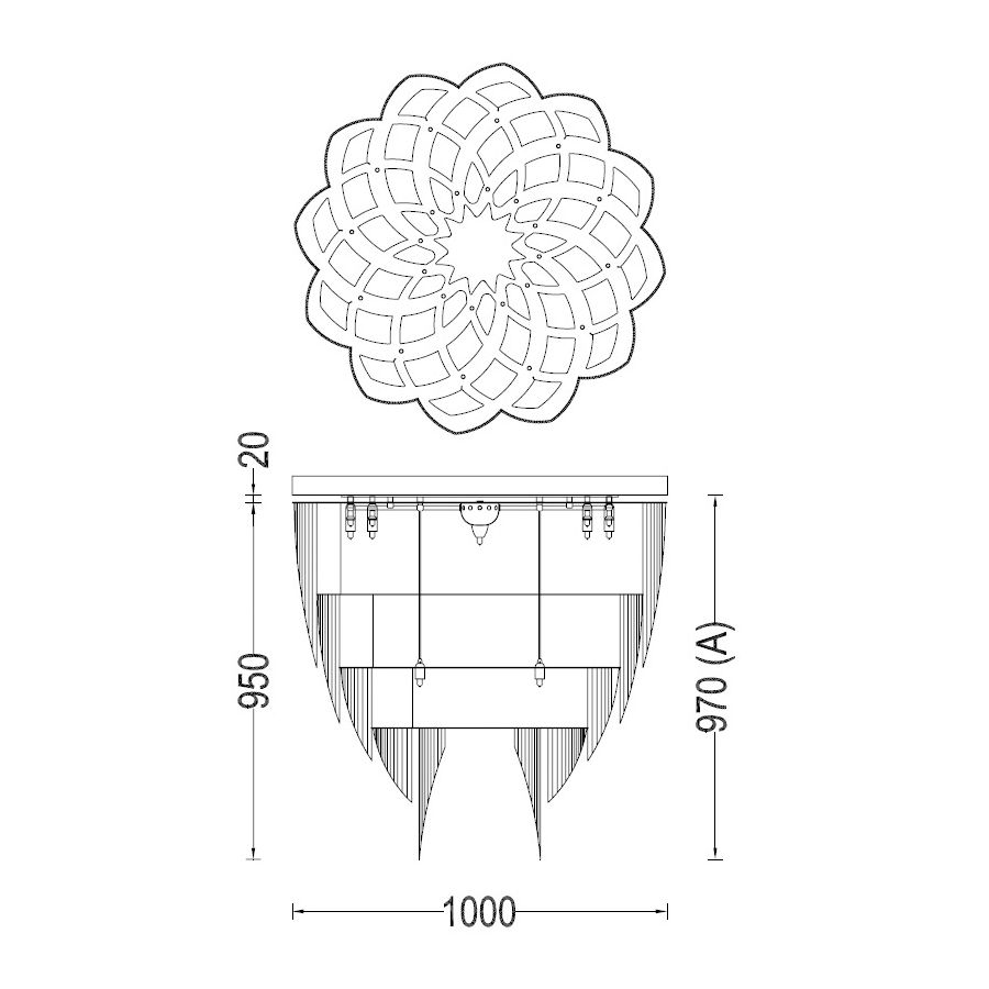 A ceiling mounted chandelier inspired by the South Africa`s national flower the `Protea`. Illuminated by 19 surface mounted G9 Halogen or LED lamps.
