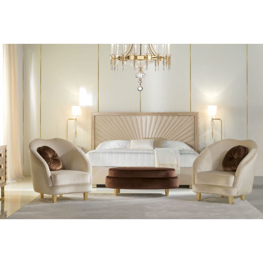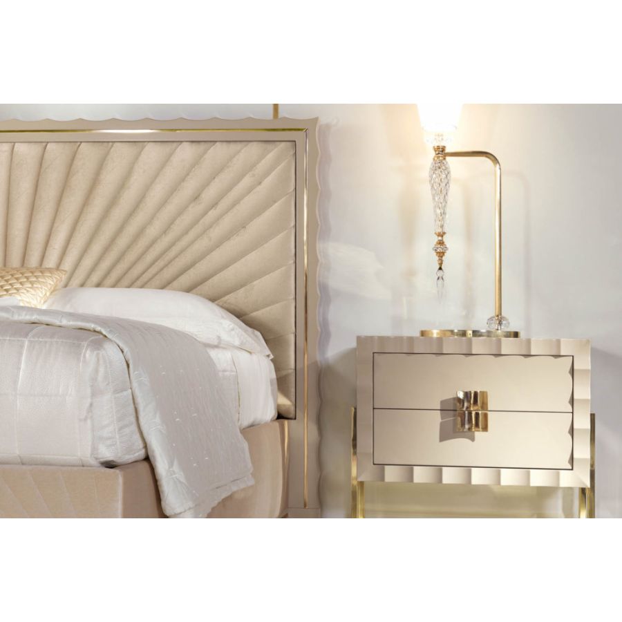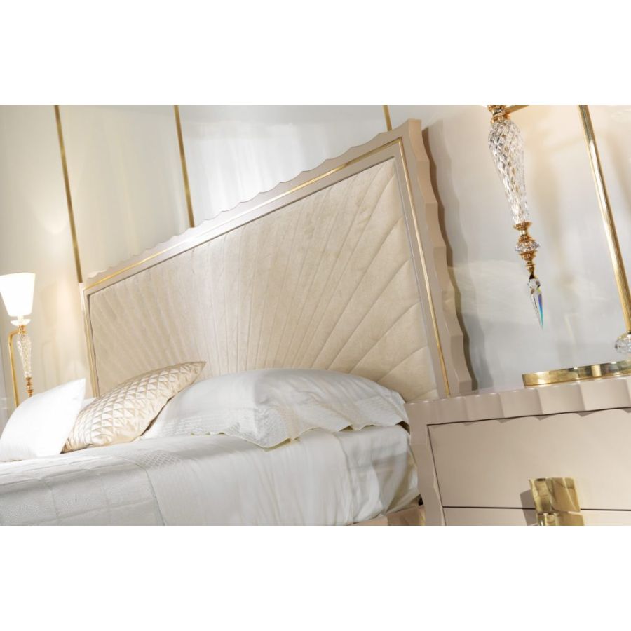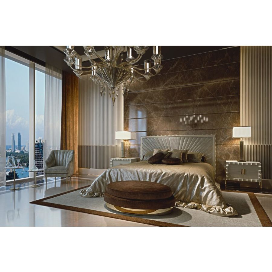 An elegant contemporary bed that perfectly represents the values of the modern ZANABONI collection. Its embroidered headboard and refined brass decorations are the result of careful research, a harmonious union between present and past, tradition and innovation, to redefine a new domesticity that interprets a vision of beauty with an unprecedented personality.