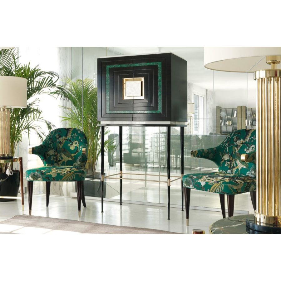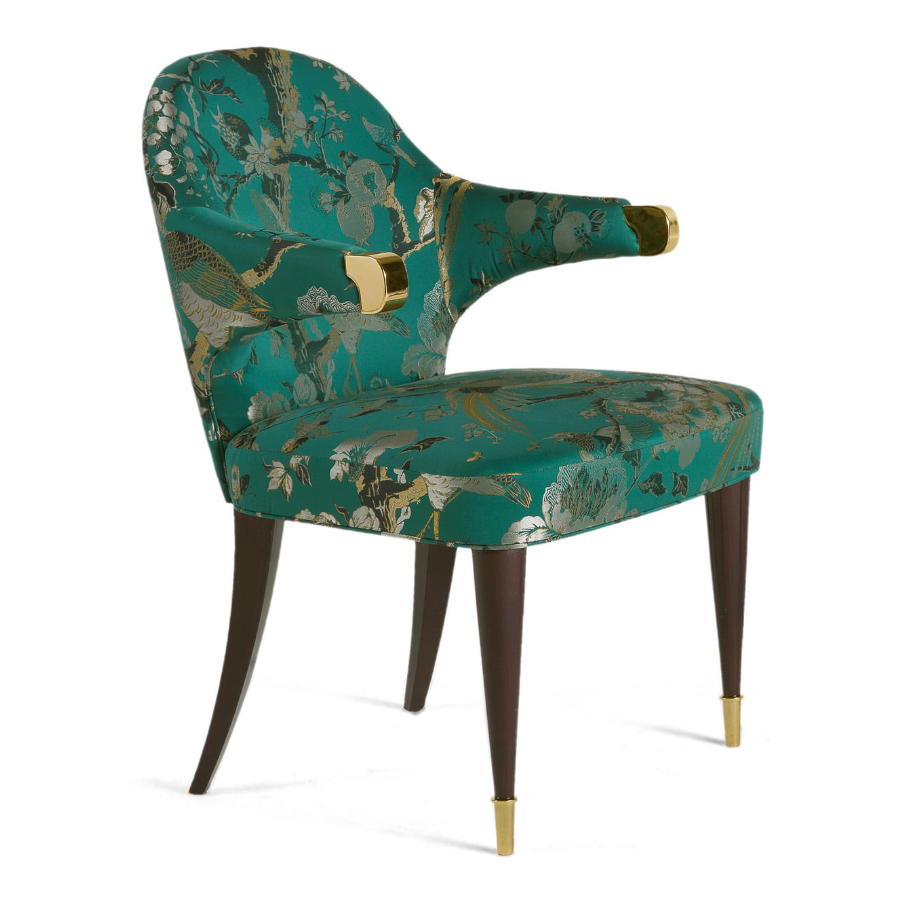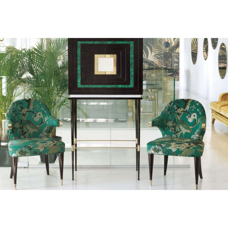 Sophisticated contemporary style armchairs with an iconic shape embellished with brass details. The artisanal workmanship according to the Brianza tradition gives these elements a unique and personal touch. The 5090 chairs are a true masterpiece of artistic craftsmanship made in Italy that comes from the long work of master craftsmen with decades of experience.