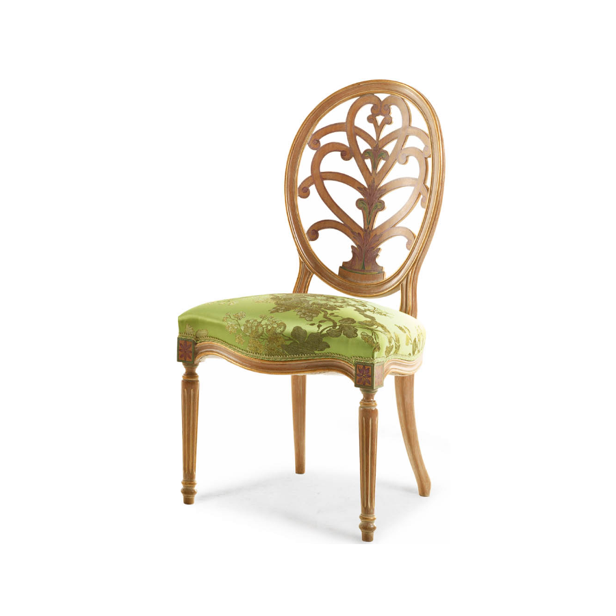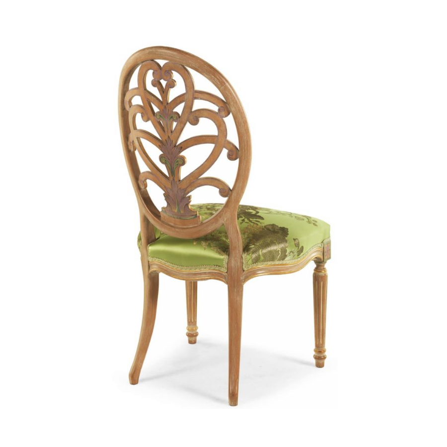 Classic style chair with finely carved backrest, padded seat and wooden frame. Ideal in combination with the T/1925 dining table for the setting up of a dining room capable of representing the true spirit of high quality classic furniture . The S/700 chair is part of the ZANABONI classic furniture collection, a collection of furnishing accessories finished with fine materials based on ancient artisan techniques handed down over the years from father to son.