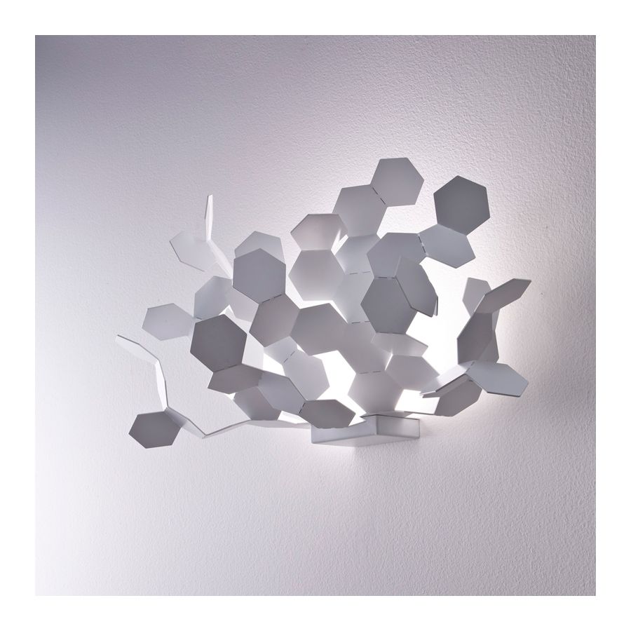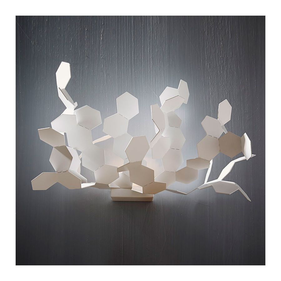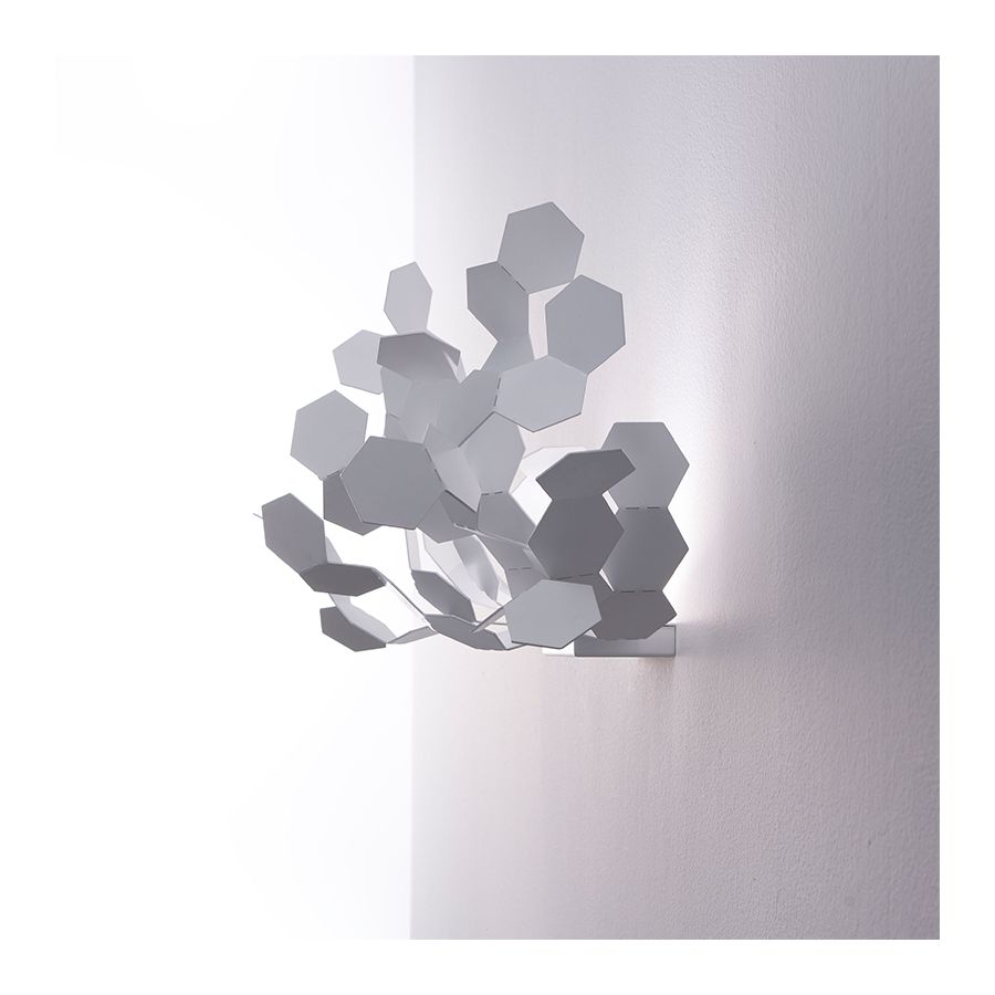 Lampa ścienna Andromeda firmy Zava, zaprojektowana przez Paolo Uliana, jest harmonijnym połączeniem minimalizmu i rzeźbiarskiej elegancji. Jej charakterystyczny klosz, składający się z heksagonalnych paneli ułożonych w delikatnym skupisku, przywodzi na myśl naturalne piękno rozkwitającego kwiatu. Ten misterny projekt przekształca lampę w coś więcej niż tylko źródło światła — staje się artystycznym akcentem na ścianie.
