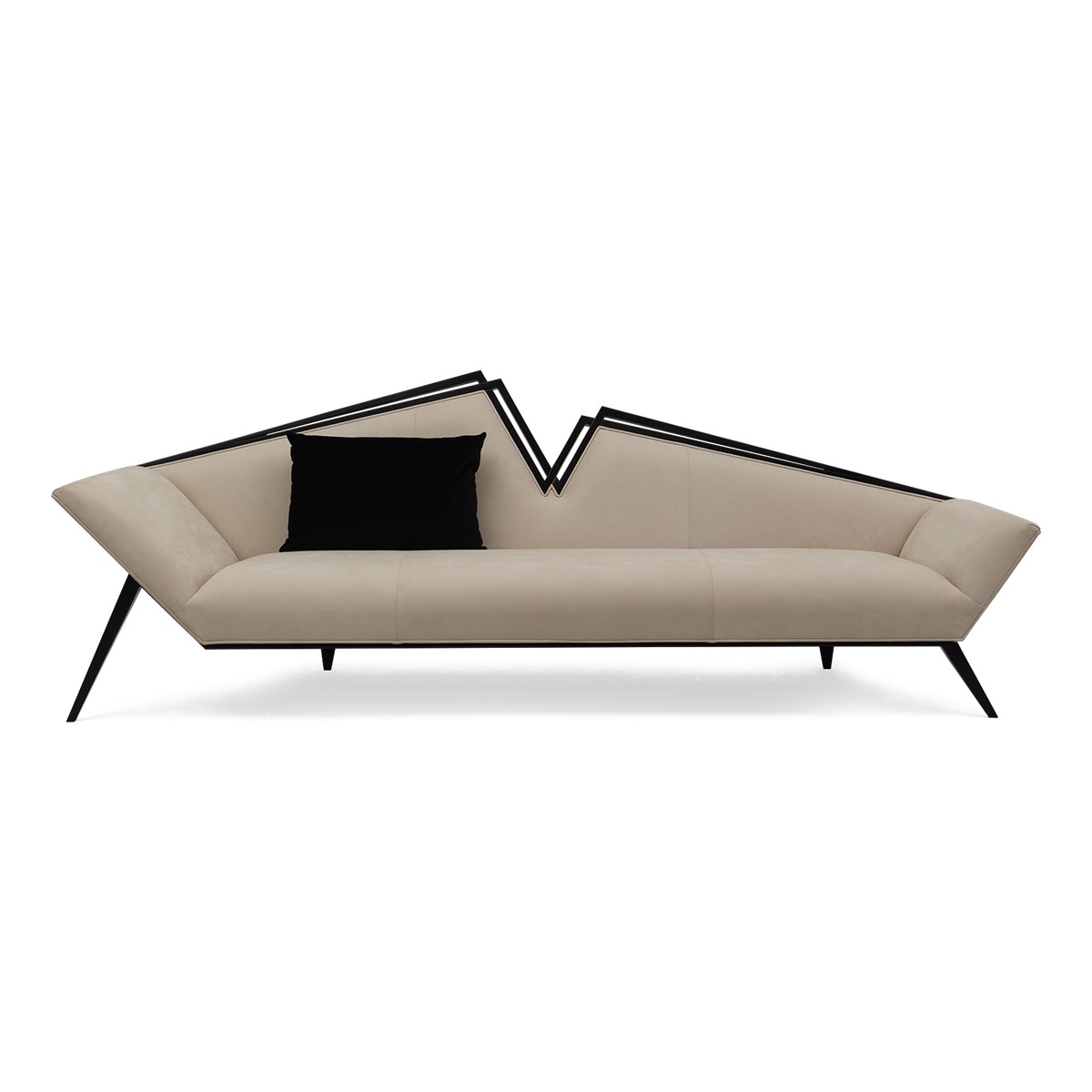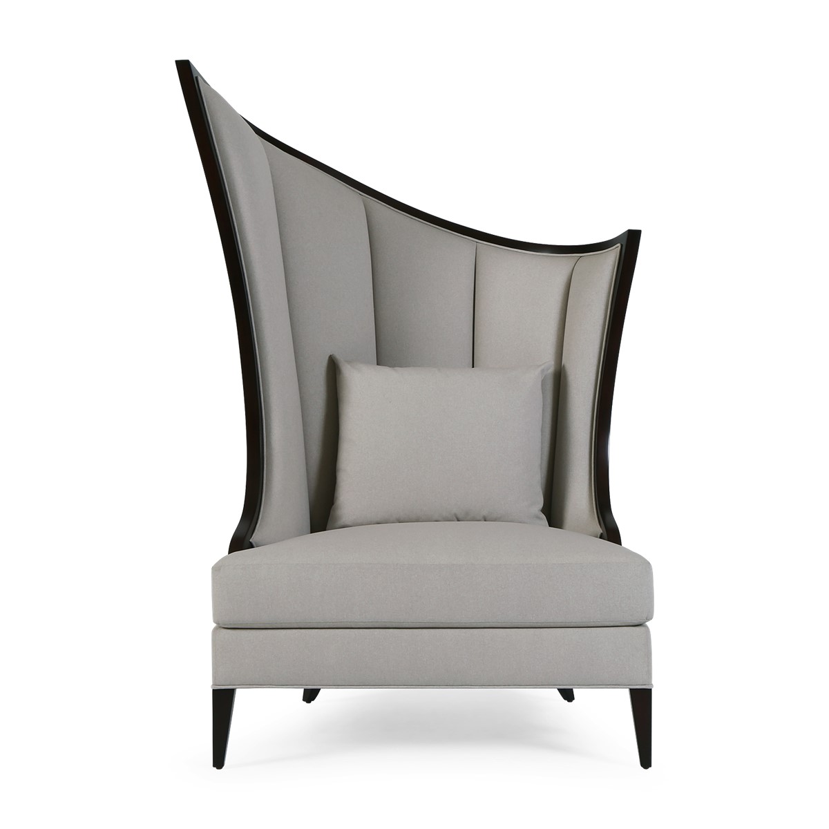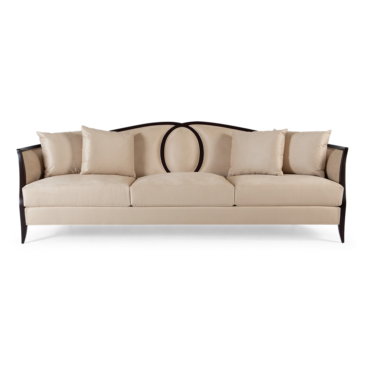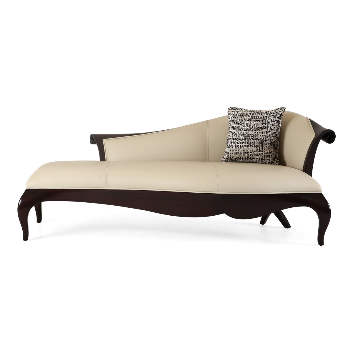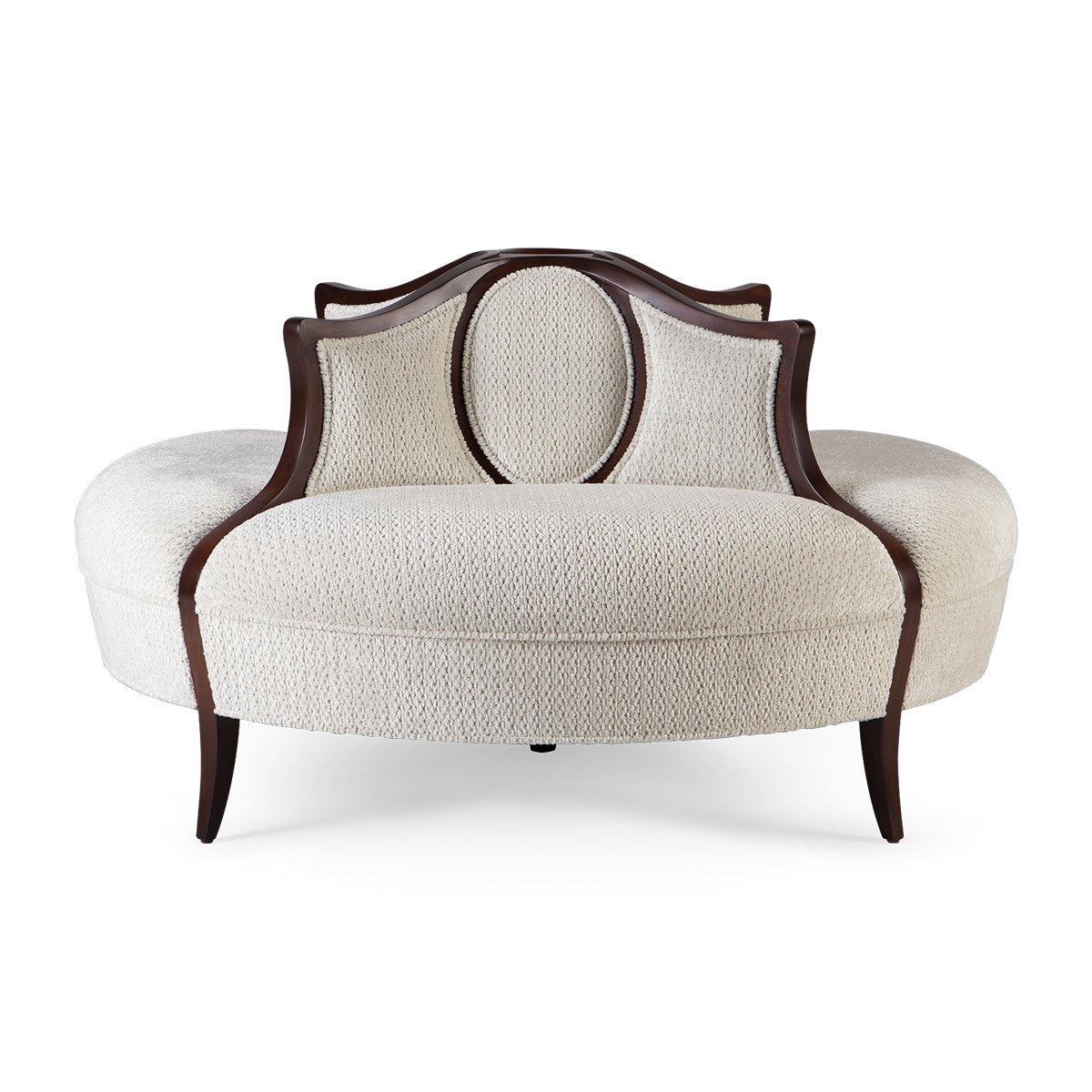 Refined upholstered and sumptuously formed, dining height settee featuring Christopher Guys signature Silk-cut behind the gently sloped back.