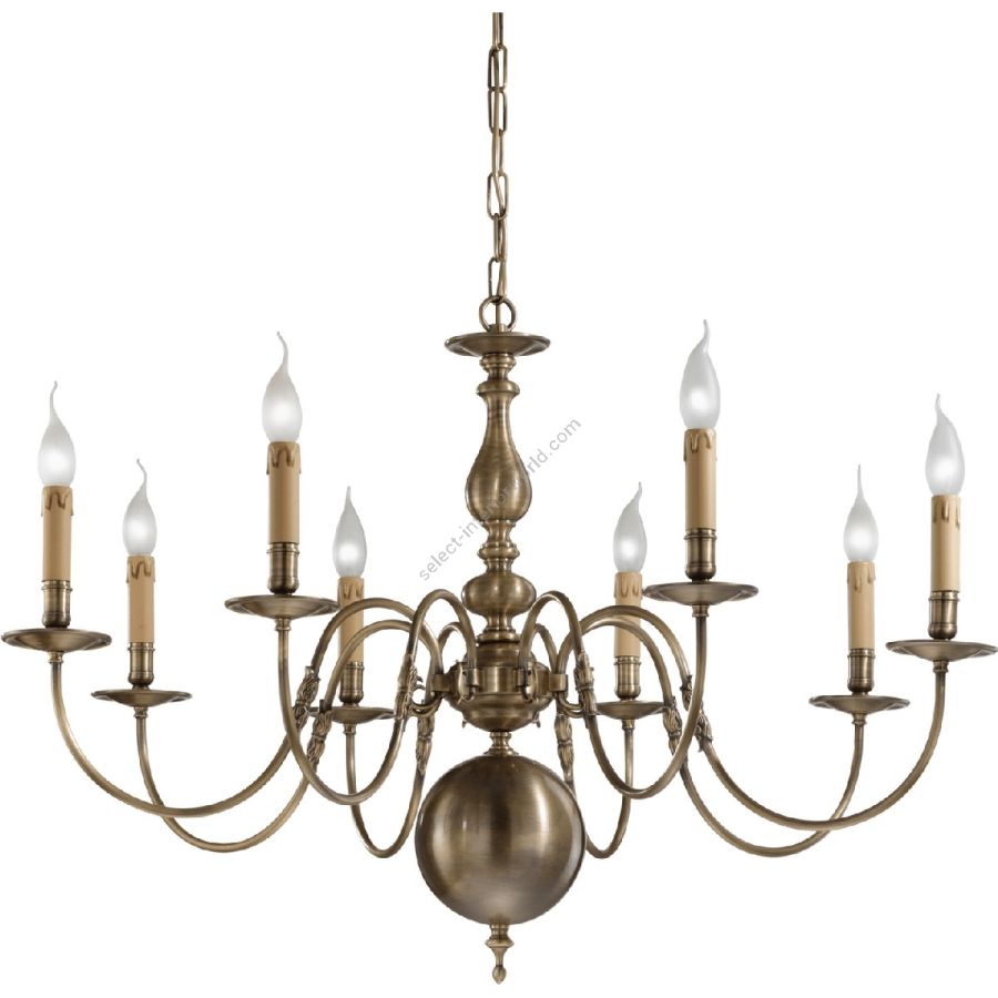 The Flemish style chandelier could not miss in our production, sober and essential with a simple decorative detail in the arms, it is presented in the Antique Bronze finish which gives an antique halo to an ever-present style. It can be made in various sizes and finishes
