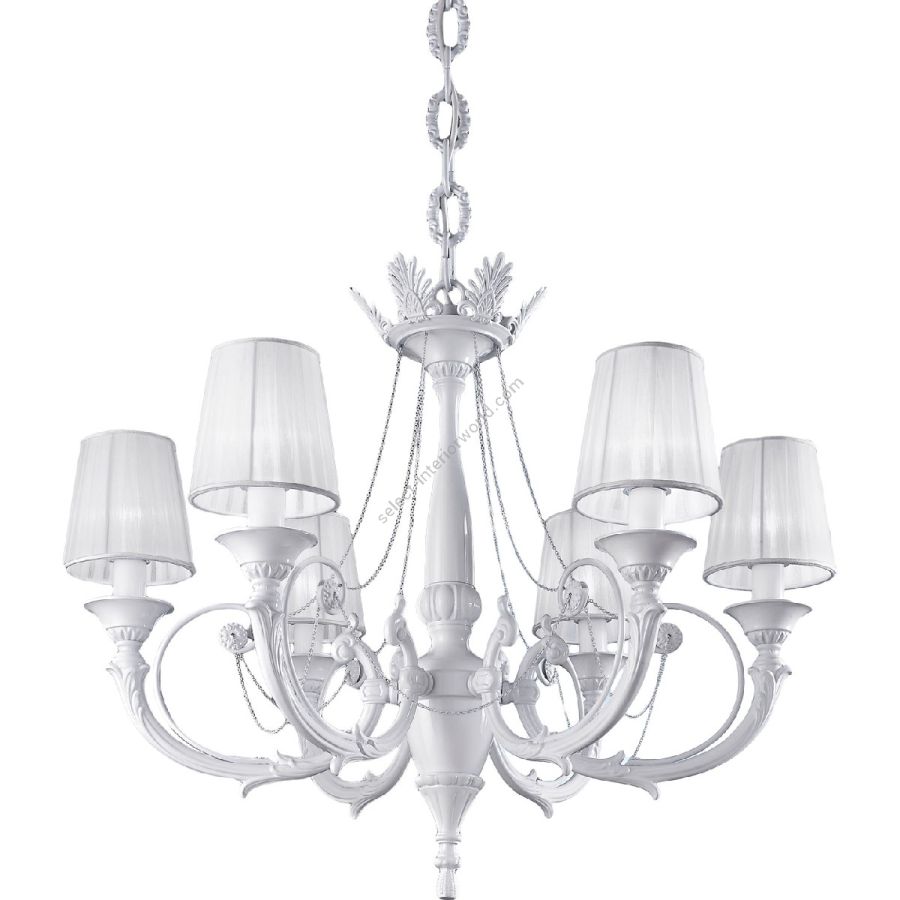 The glossy white finish and the white organza lampshades make the Ginevra collection a modern classic, suitable for more contemporary rooms, while the Antique Bronze finish and the taupe color organza lampshades give a refined appearance. Customizable in finishes and sizes