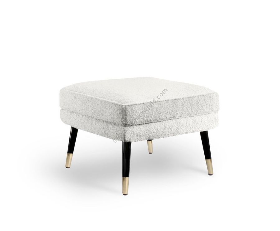 Comfortable and relaxed in the seat, it fascinates with the refined shape of the legs, whose lacquered wood culminates in a metal tip: a seductive and confident detail. Bernadette Pouf is part of Bernadette Family of seats which includes the dinner chair, the dinner bench, the bar chair, the armchair, the small sofa and the pouf.