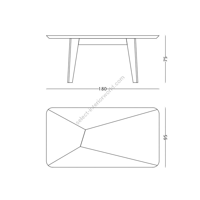 Dining table with poplar plywood base covered with leather or synthetic leather. Top in smoked eucalyptus veneered poplar plywood.
