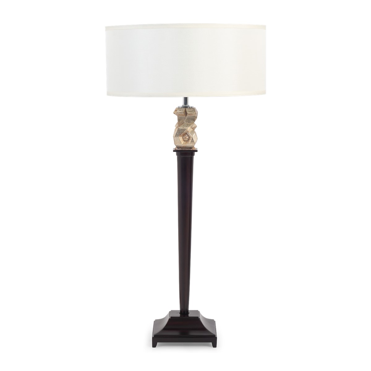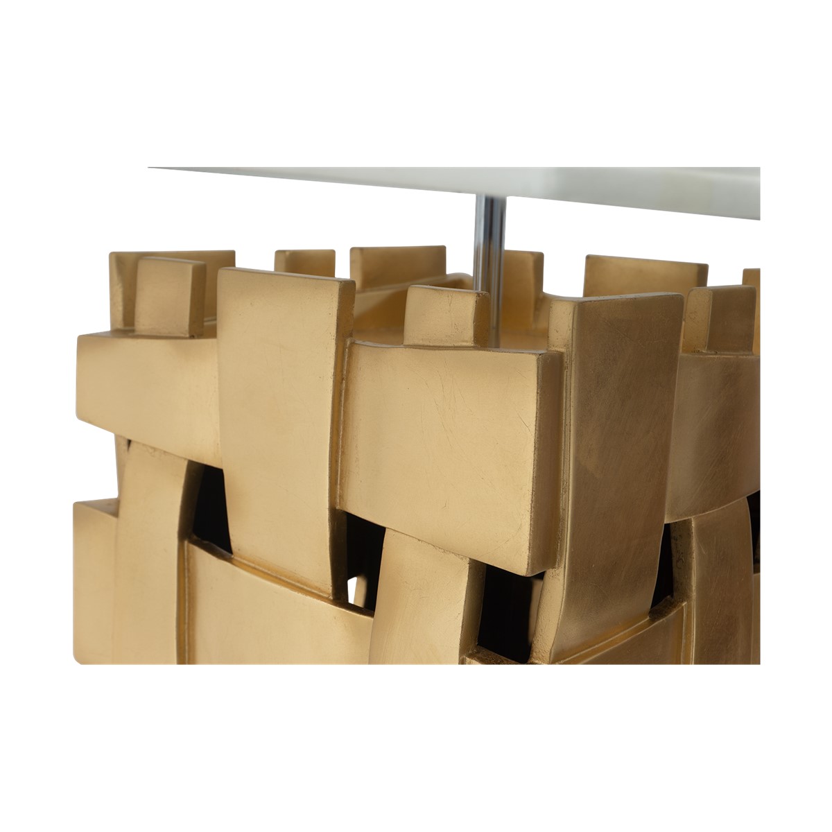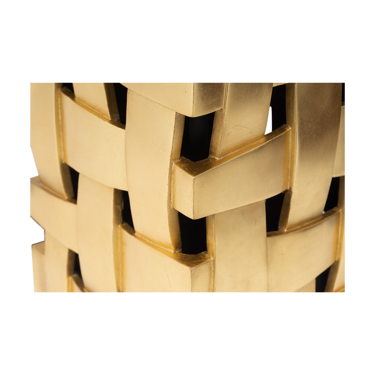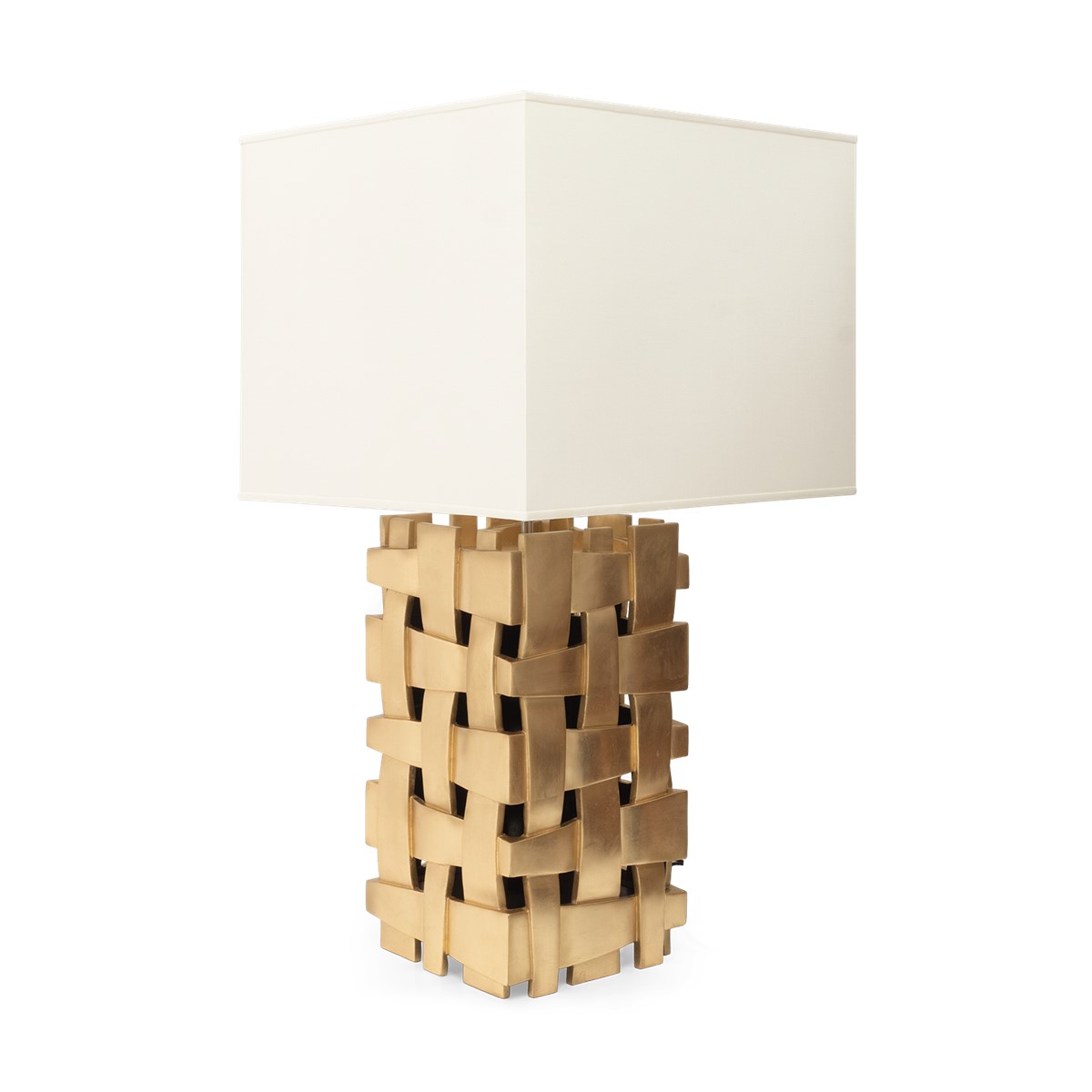 Make a dramatic statement with this cut-out square contemporary styled table lamp featuring a spectacular hand carved 'weave' pattern.