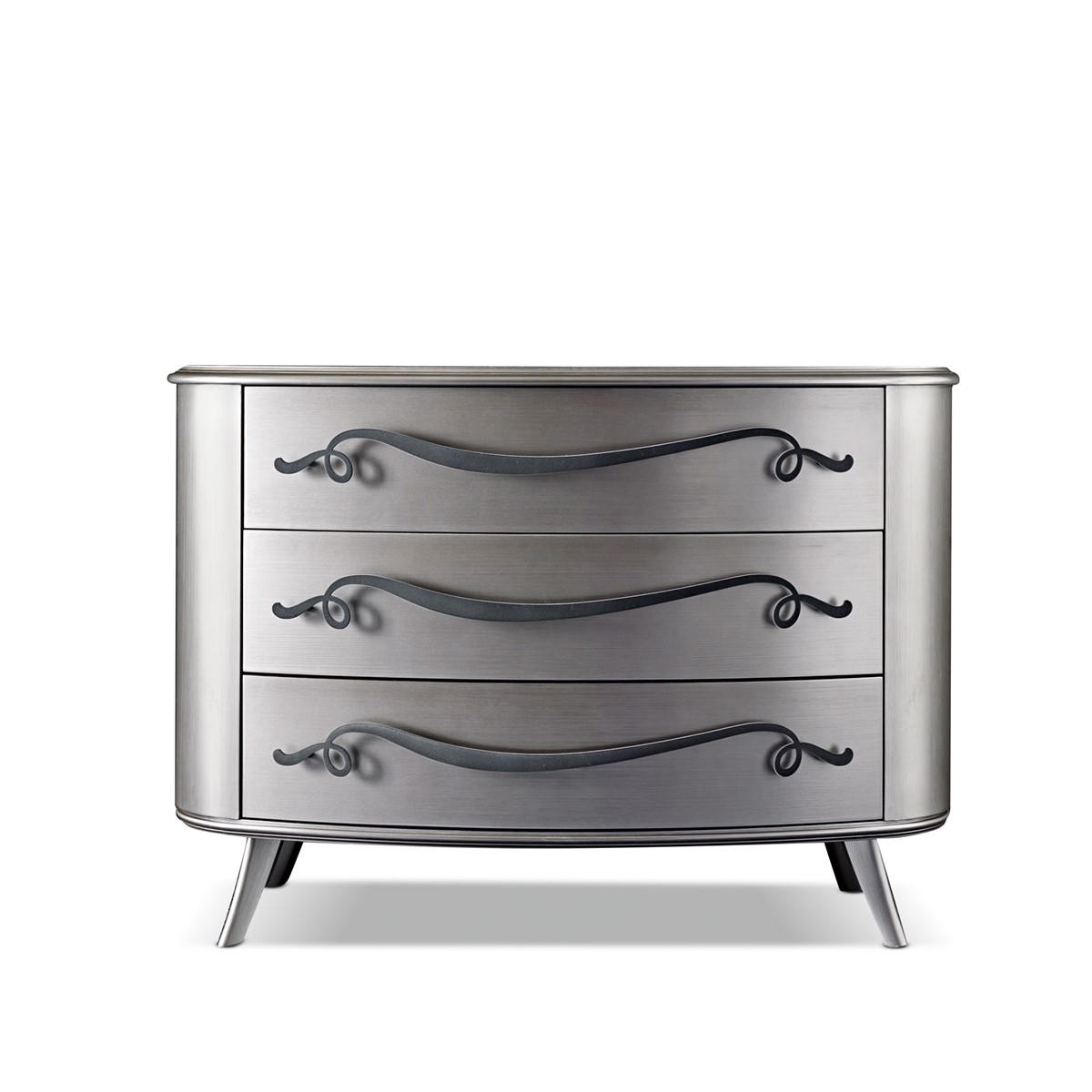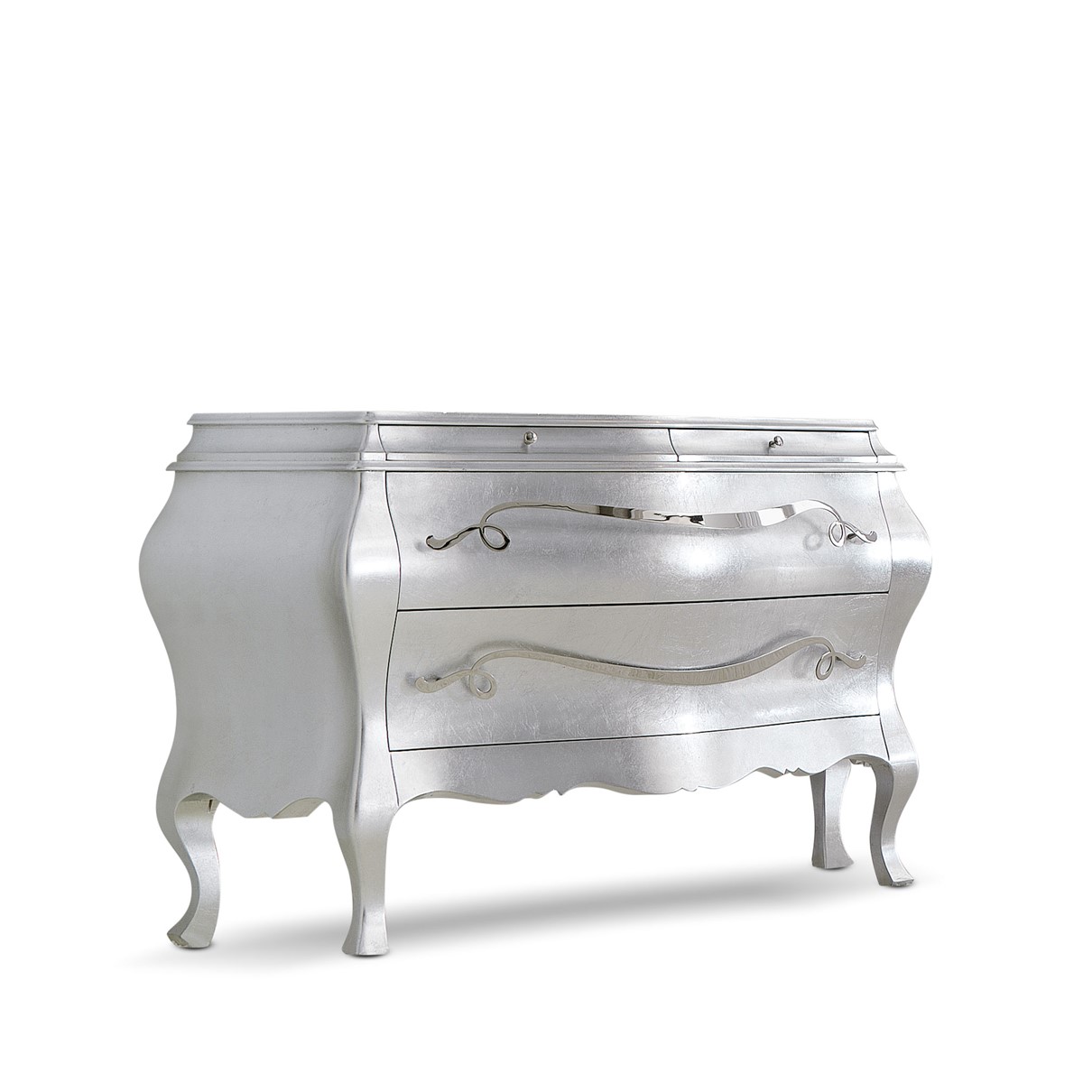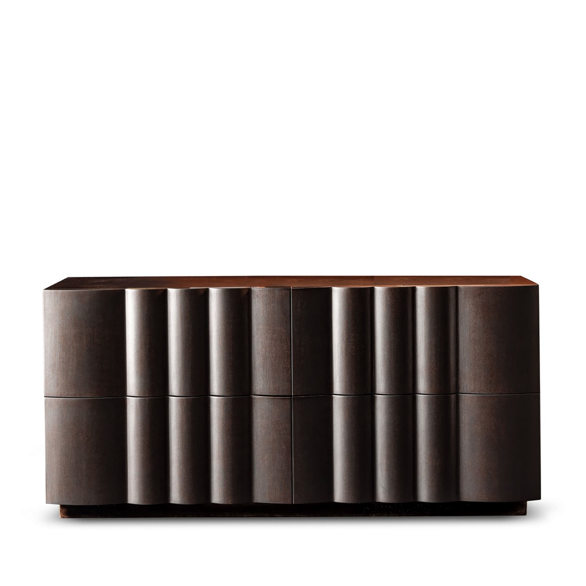 Wooden chest of drawerswith a modern-contemporary line made with a precious carved wave pattern. Available in 4 or 6 drawer version with push-pull opening.