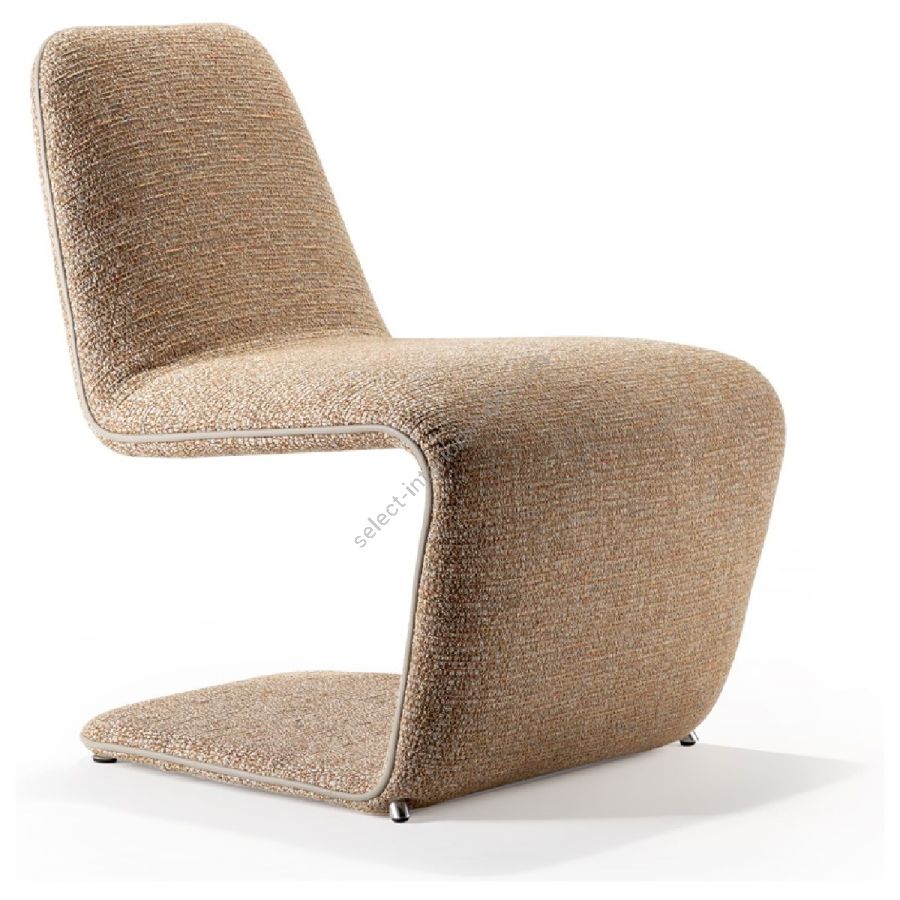 Low chair with metallic tubular structure and polyurethane padding. Upholstery in fabric or leather.