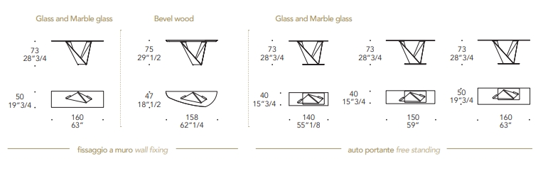 Console with metal base in Bronze or in satin brass or titanium finishing. Free-standing version with plinth in bronze or smoked mirror glass and top in transparent glass or in Marmoreflex/Legnoreflex glass.