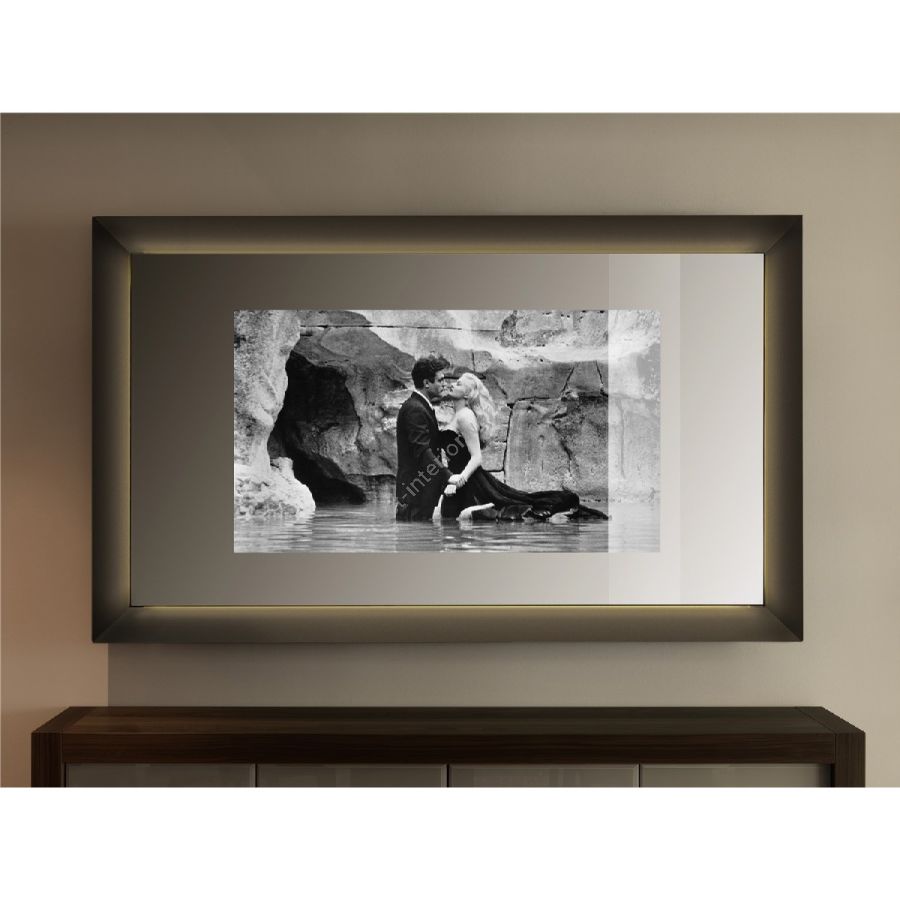 Mirror/Tv container. Frame available in smoked mirror, lacquered or etched lacquered glass, Carbon glass or Mesh glass or in satin brass finish. LED lighting system and USB connections as options. to fit TV till to 85"" with a max.7 cm thickess