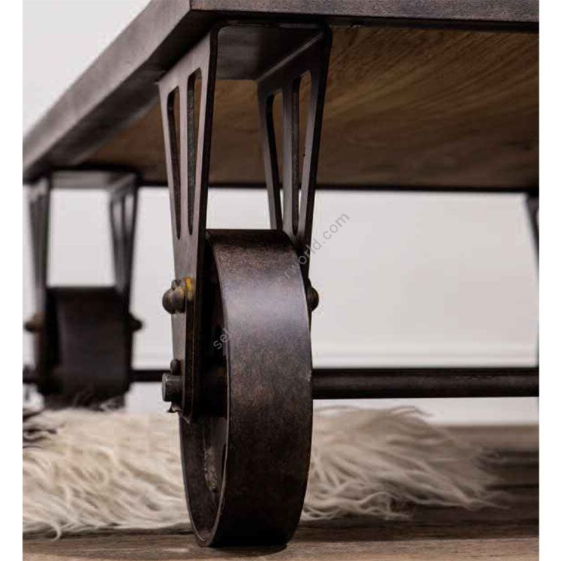 The blacksmiths of Robers do not break their tradition to manufacture the furniture of hard steel, hot-galvanized steel, iron, cast aluminum, and copper. This coffee table is not an exception. The wooden top has a smooth surface and is safely attached to the wheels to be steady.