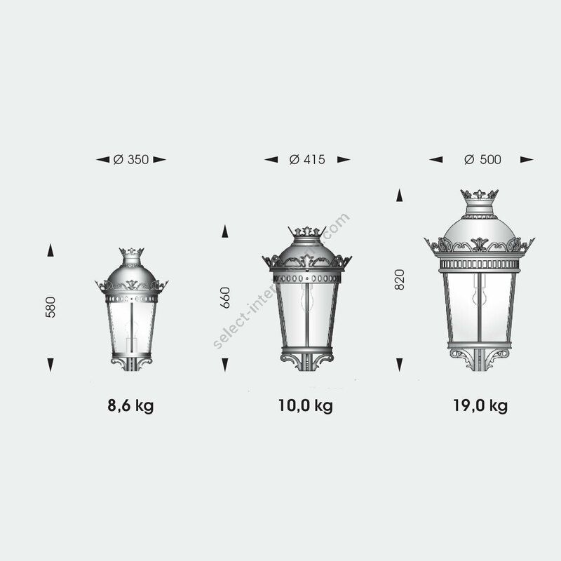 A post lamp designed by Robers (Germany) in a majestic Victorian style, it will become the main decoration of the garden, the entryway, or the driveway. Every part and detail is handcrafted and ornate following the main idea - the floral motifs. The lower pole has got special attention being crafted in several geometric shapes and decorated by carving. The arm that keeps the lantern-shaped shade has got a daisy-flower decor while the shade is richly ornate by other types of flowers in addition to the traditional combination of rods the brand uses for its lamps. The fixture is available in 10 finishes among which old bronze, old black, antique brass, iron nature, etc.