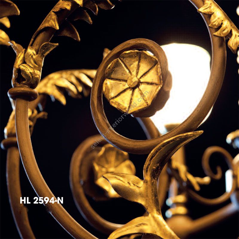 The new suspension lamp by Robers (Germany) is a combination of luxury and simplicity. The manufacturer prefers to keep its lamps rather simple, even laconic, but this time the designers created an amazing solution by adding some luxurious elements to it. The champagne color of the glass lampshades, the decorative elements - petals and leaves, the smooth and curved lines of the arms - all these details show how carefully the blacksmiths together with designers worked about this suspension lamp. Every single arm crowned with the lampshade is decorated by hand. The final lamp has got a classic bottom ball, the finials, and an elegant chain that connects the lamp through the loop with the top canopy.