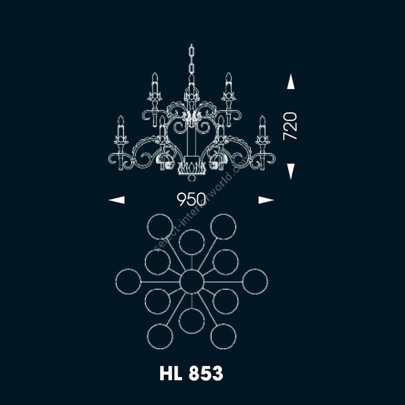This exclusive suspension lamp by the German brand Robers is represented in their collection “Indoor 11”. The designers broke their rule and created a lamp in a more Classic than Industrial style. It’s made of the wrought iron fully: the base, the candle tubes, the candle cups, canopy, hook, column, and arms. The blacksmiths handcraft every detail and then assemble the final product. They demonstrate how a huge chandelier made of iron can look elegant and luxurious: its arms are curved in a graceful manner and decorated by numerous elements also manufactured by hand. The suspension lamp is provided by 12 candles made of glass in a matte finish.