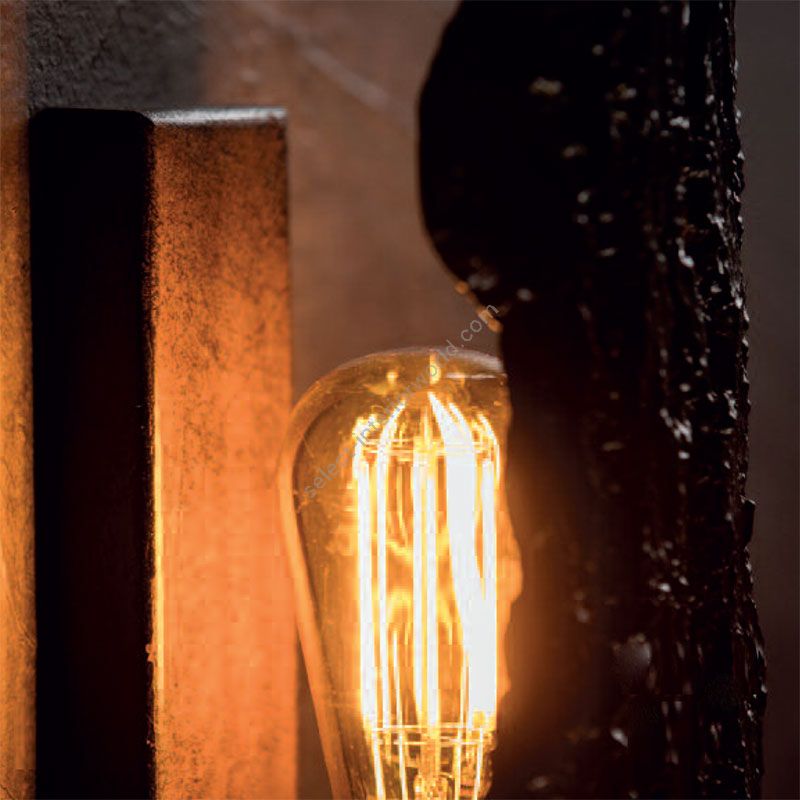 This wall lamp has a unique design and consists of several uncommon elements. It belongs to the “Indoor 12” line in the portfolio of the German brand Robers. It does not have a classic lampshade of glass. This is a piece of steel that imitates the trunk of a tree: it repeats every hollow and line typical for the tree bark. To get a complete imitation, the craftsmen paint it into terra color as one of the options. But every customer takes his own decision that will fit the interior the best.