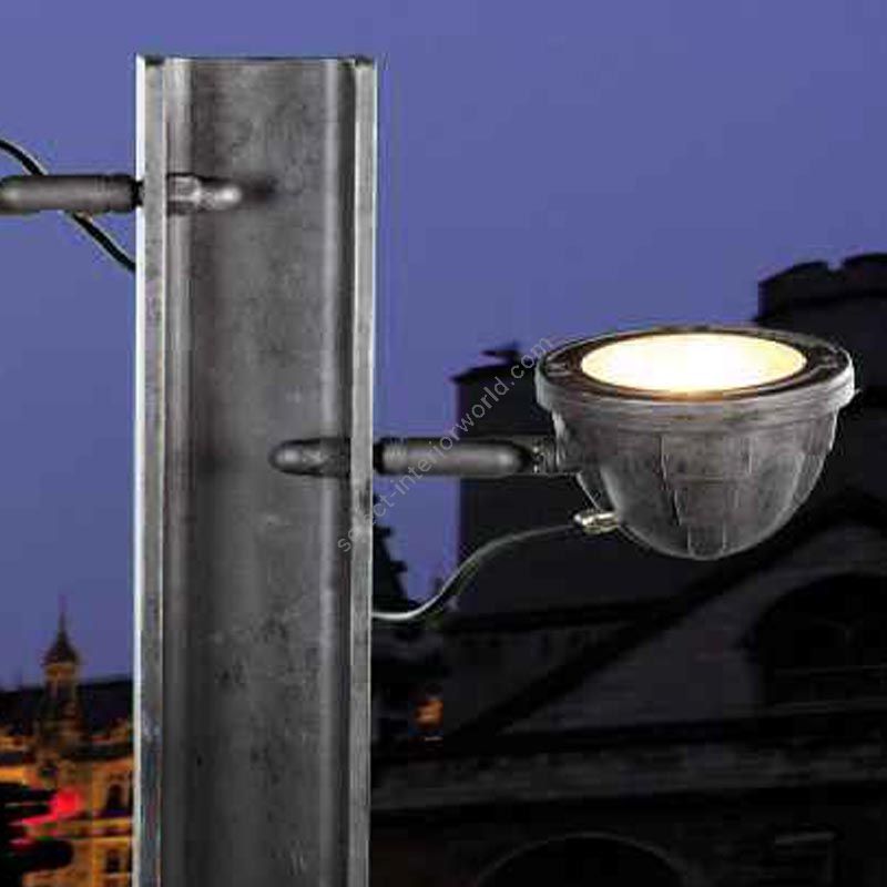 The Outdoor Spot Lamp with 2 spots belongs to the collection “Industrial 22”, in which traditionally all products are made of hard steel. It’s one more idea of how the lighting in a strict Industrial/Urban style gets the timeless look. This high lamp serves as a perfect source of lighting, being provided for 2 LED lamps. Both spots are made of cast aluminum and provided for flexible fixtures, the I-beam is in hot deep-galvanized steel. These features add sustainability and prolong the service period. The body of the lamp has a geometrical shape and is distinguished with the sea and water resistant features. Every detail and the fixtures are handcrafted by the experienced blacksmiths of Robers.