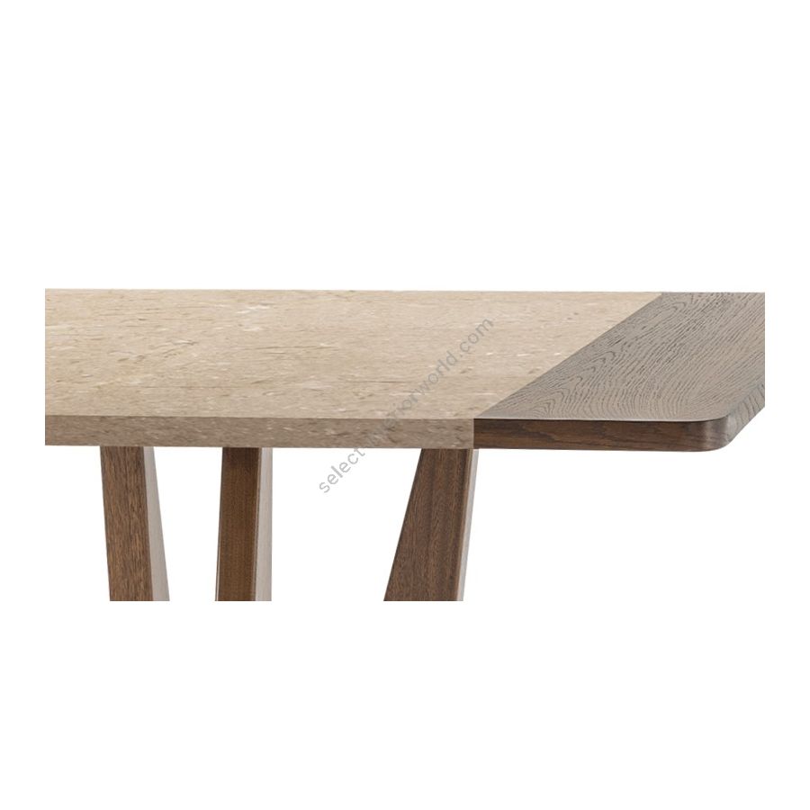 The Rumba dining table is light, functional and focused on detail. The top has meeting veneers and soft curvy edges. Its base has gold details which stand out the sinuous shapes of the Rumba collection.