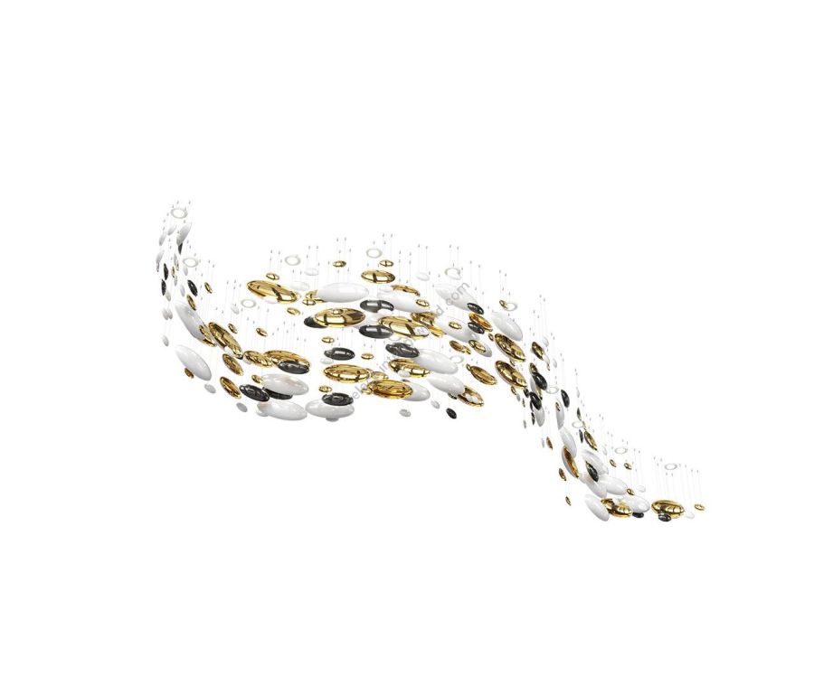 Embodying elegance in its purest form, the Bowls collection showcases a sleek design that creates a fluid wave of light within any interior. Each crystal piece is enhanced by contrasting finishes – one side features a reflective metal nanocoating, while the other is infused with a complementary colour. Suspended in a flowing arrangement, Bowls forms a striking, contemporary statement piece.