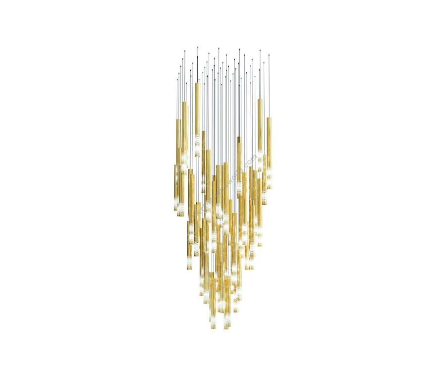 The Symphony collection unites elegance and modern innovation, composing a visual masterpiece of light and form. Each sleek crystal tube is finished with a metal nanocoating and intricate geometric cuts. Arranged in a cascading formation, they reflect and refract light in beautiful patterns, creating a true symphony of light.