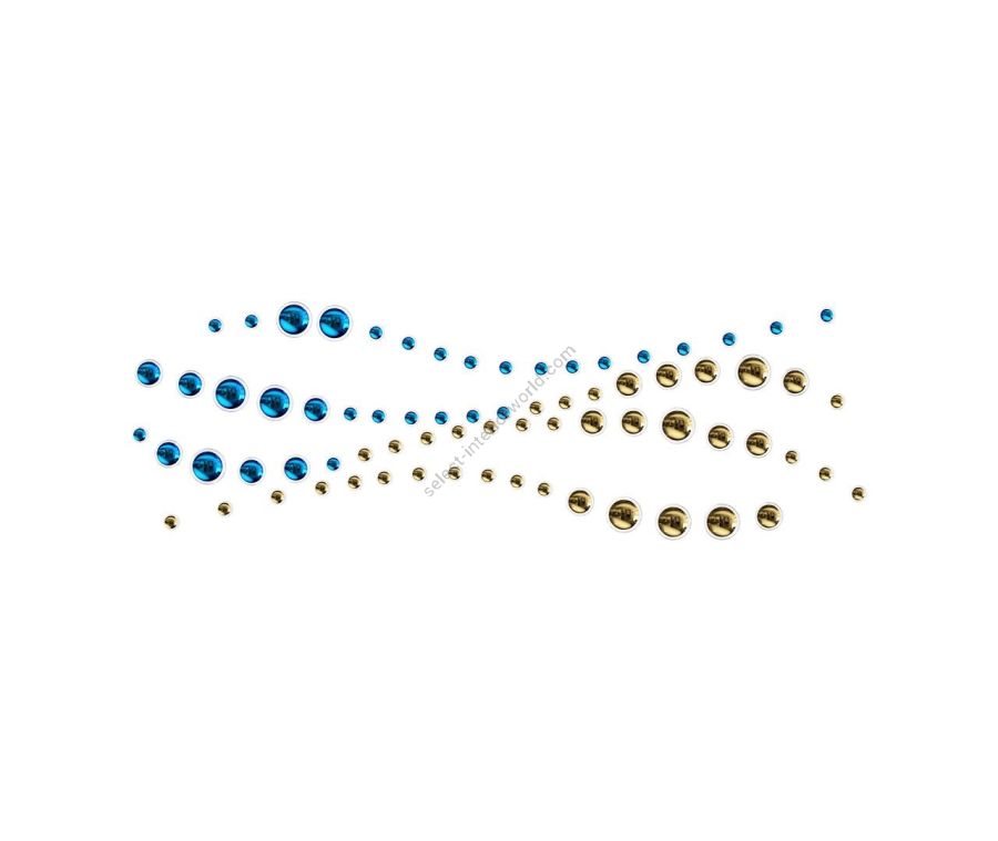 Lagoon explore the soft free-form lines and curves of a beautiful lagoon. Just like in nature, create a private inlet with blue, gold, and titan nano-coated glass components that shine in every direction. Let your imagination play out the spectacular scenery right on the wall.