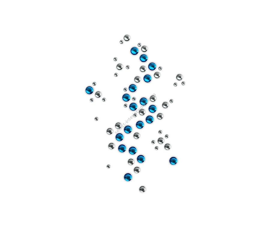 Lagoon explore the soft free-form lines and curves of a beautiful lagoon. Just like in nature, create a private inlet with blue, gold, and titan nano-coated glass components that shine in every direction. Let your imagination play out the spectacular scenery right on the wall.