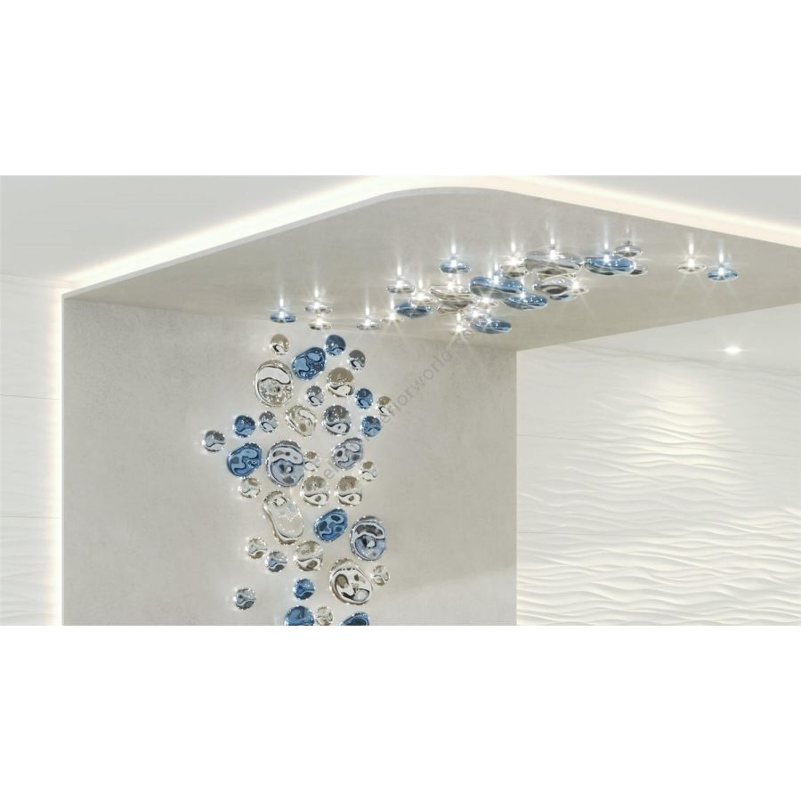 The Nuggets collection draws inspiration from raw, naturally formed lumps of gold and other precious metals found deep within the earth. Each crystal component is individually handblown and uniquely shaped, then finished with a reflective metal nanocoating. Every piece is one of a kind, allowing Nuggets to adorn any wall in captivating patterns.