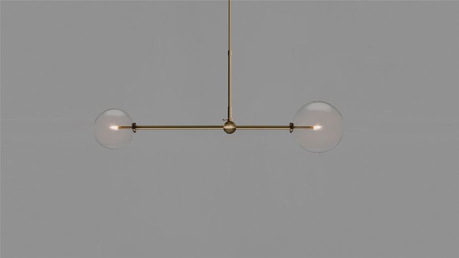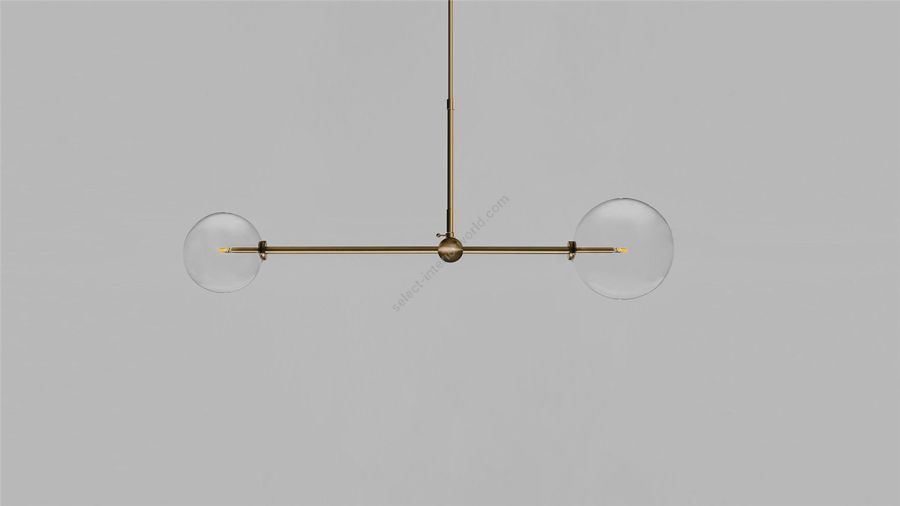 The Balance 200x150 pendant imagines harmony as a process, symmetry in motion balancing the forces of dynamic spaces. The pivoting axis creates motion in a harmonious equilibrium between two different sizes of mouth-blown glass spheres- a visual melody, adjusting to every audience.