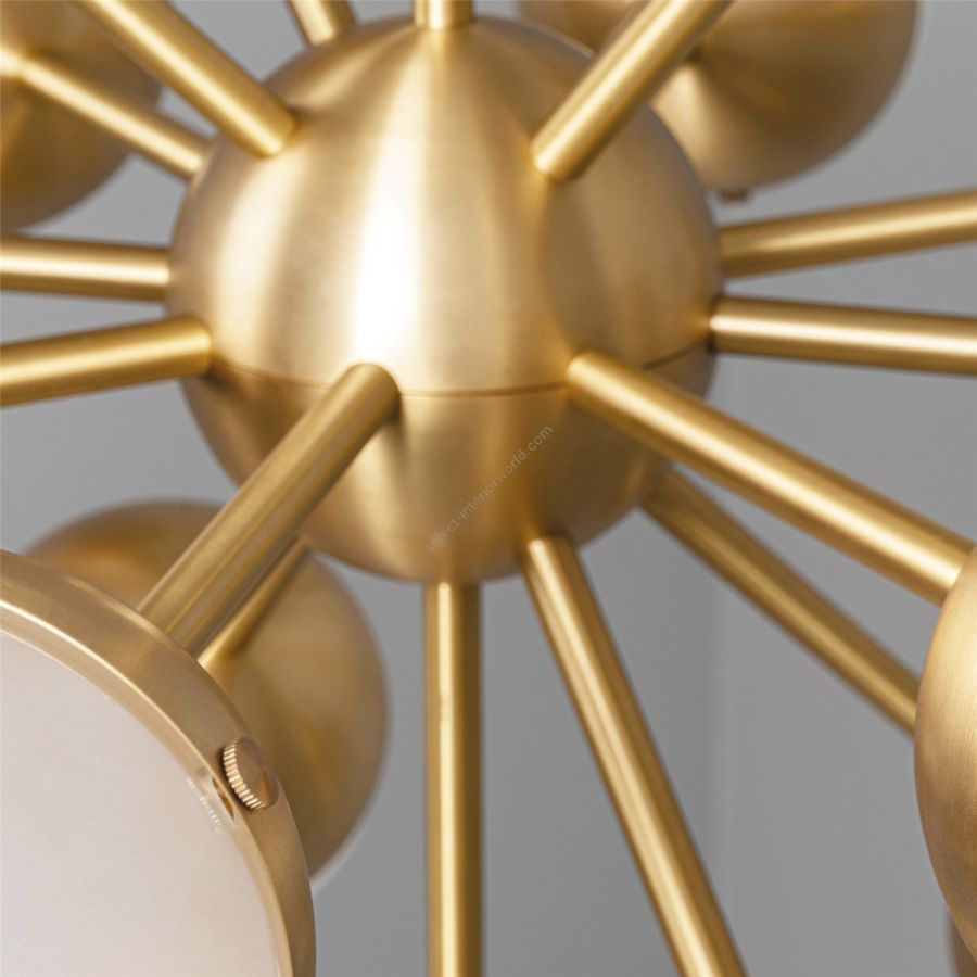 Sparks of light trail brass lines in a circular formation. Radiating out from a spherical nucleus, ten sprightly rods wield illuminated hemispheres, spectacular spatial punctuation.