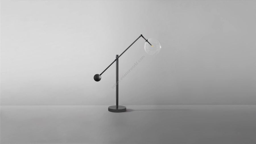 This adjustable table lamp strips the classic cantilevered silhouette back to its bare essentials, retaining its sense of style and play. A striking, angular form, derived from the dynamic balance between illuminated glass globe and brass counterweight.